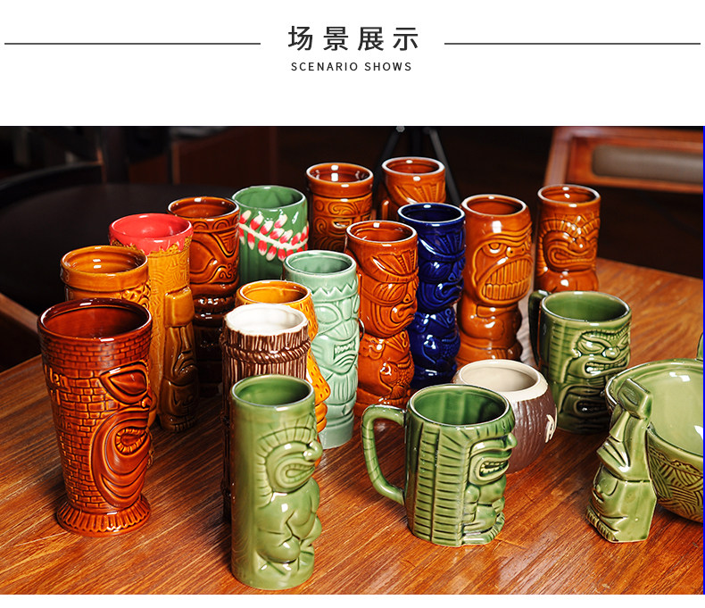 Семейное искусство Tiki Ceramic Cup Tiki Cup Coctail Ceramic Cup Cup Cup Cup Beach Prink Cup