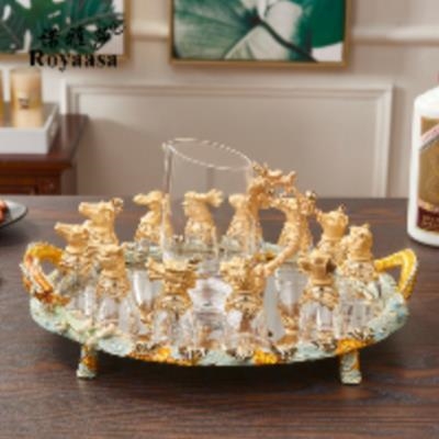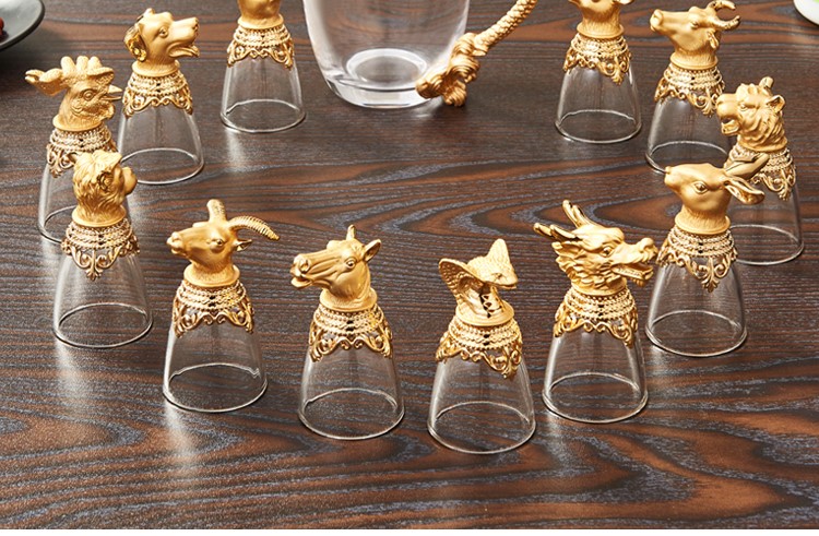 Бокал, диспенсер для вина, комплект, стеклянная стопка, китайский гороскоп, китайский стиль