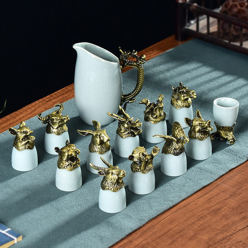 Керамическая стопка, бокал, бронзовый винный набор, мини-чашка, китайский гороскоп, китайский стиль