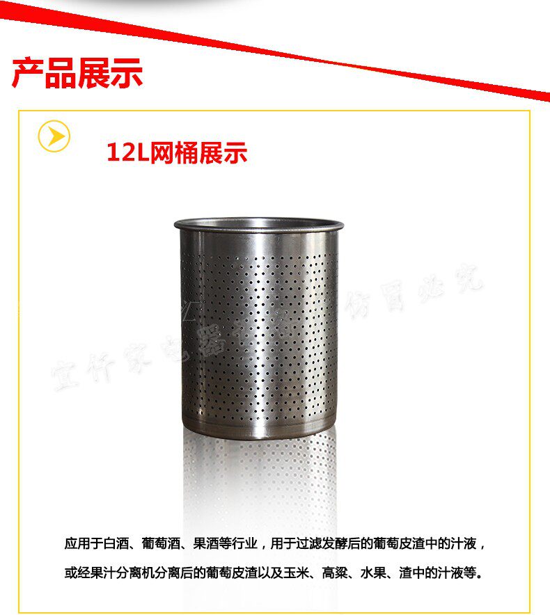 Диаметр, указанный на рисунке, является внешним диаметром. Три типа сетчатых бочек являются аксессуарами для прессов нашей компании с одинаковыми характеристиками (т.е. прессы на 12 литров, 22 литра, 36 литров), а не объемом самой сетчатой бочки. Их можно использовать отдельно или в сочетании с нашими прессами.