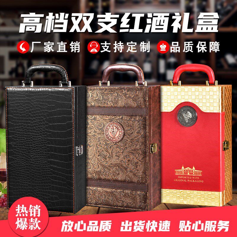 Universal Red Wine Gift Box упаковка двойная пятно в складе, винная коробка деревянная коробка индивидуальная две коробки с красными винами
