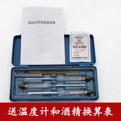 • Коробка содержит 3 алкоголика, существует термометр (используется для измерения температуры), а затем используйте внутреннюю температуру, преобразующий алкоголь, чтобы показать стандартное содержание спирта 20 ° C.