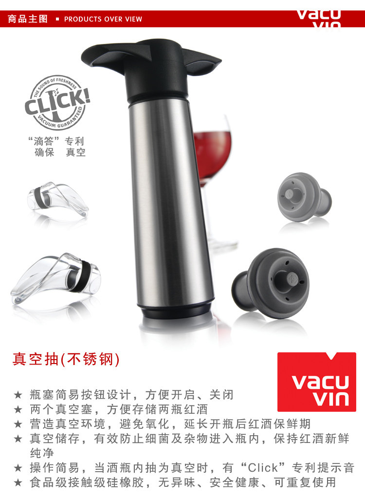 Вакуумная пробка для бутылки из нержавеющей стали, вакуумный диспенсер для вина