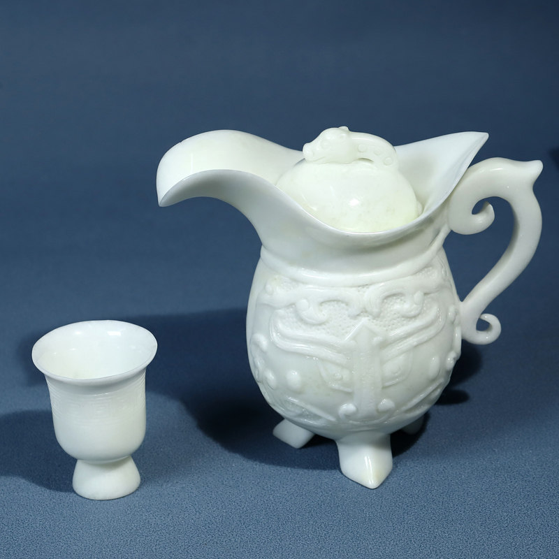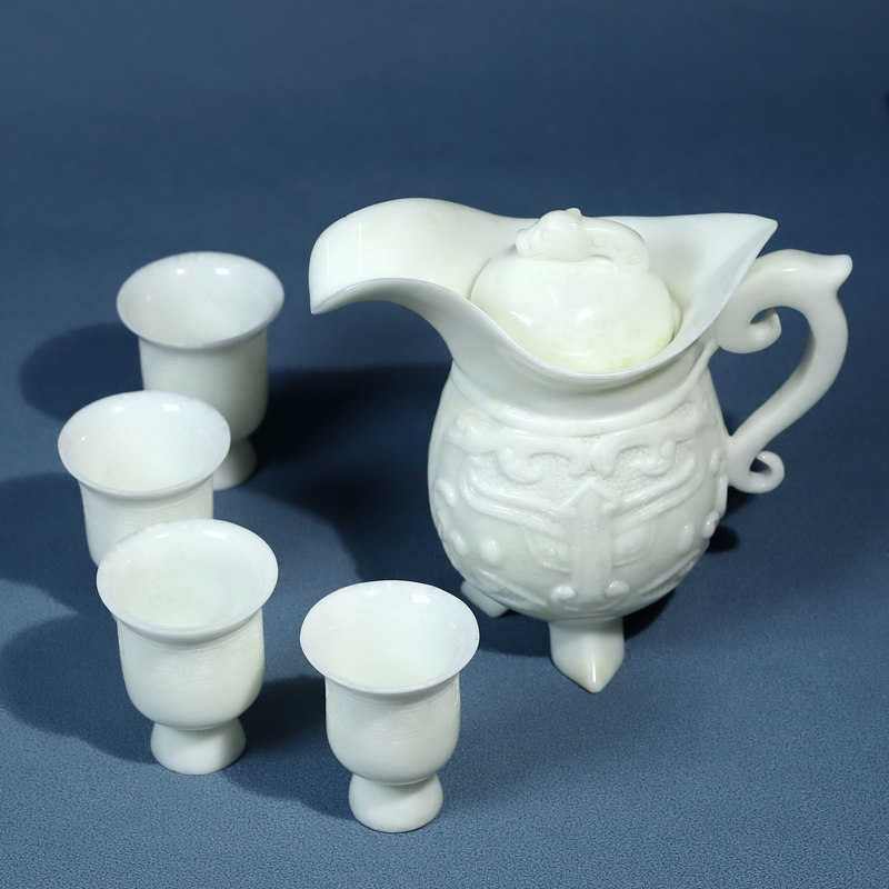 Xi'an Lantian Jade Set Set Pot Wine Atensil Tea Set 09 ore Jade Caring Master Design Работанный резьба из Лантианского нефрита.