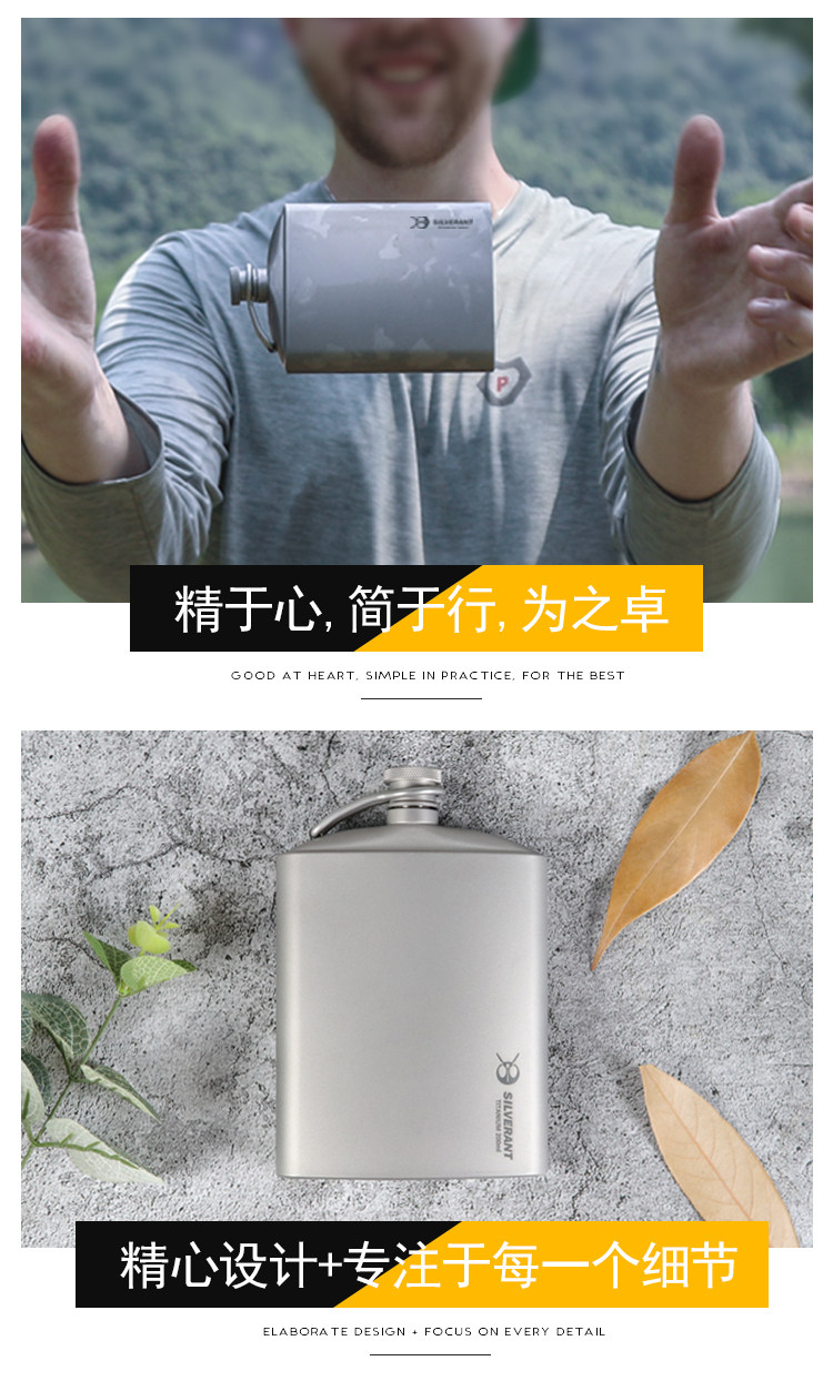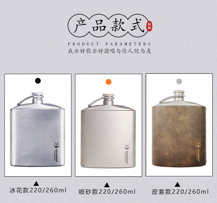Серебряный муравей чистый титановый горшок с плоским вином Здоровый антибактериальный открытый портативный титановый сплав набор сплавных сплавов может содержать от 4 до 5 таэлей вина