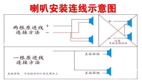 [第三步:接喇叭线:把控制继电器下来的蓝、黑线为一组分别高音和低音喇叭上。]