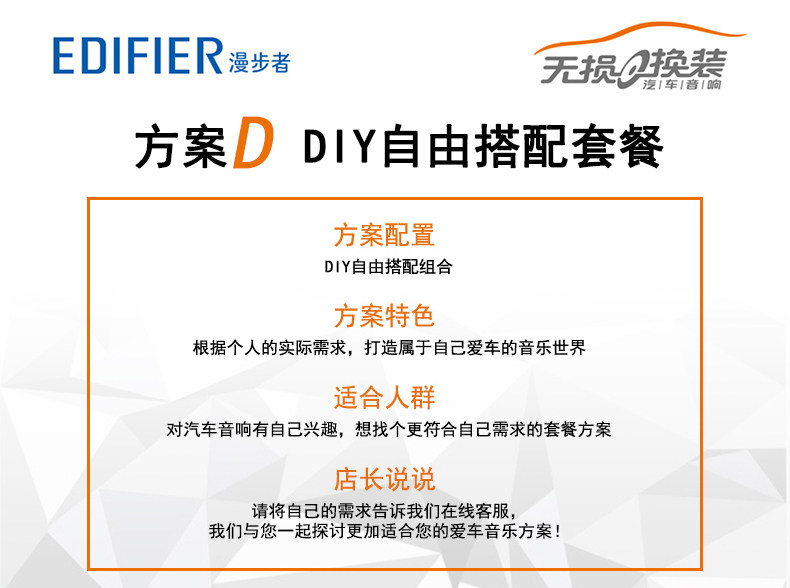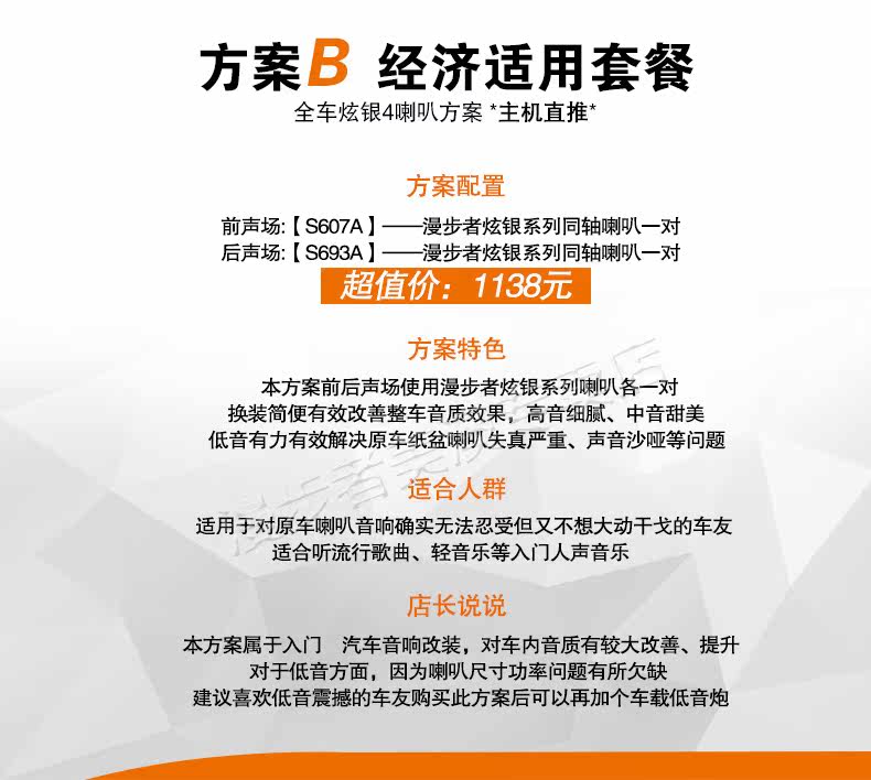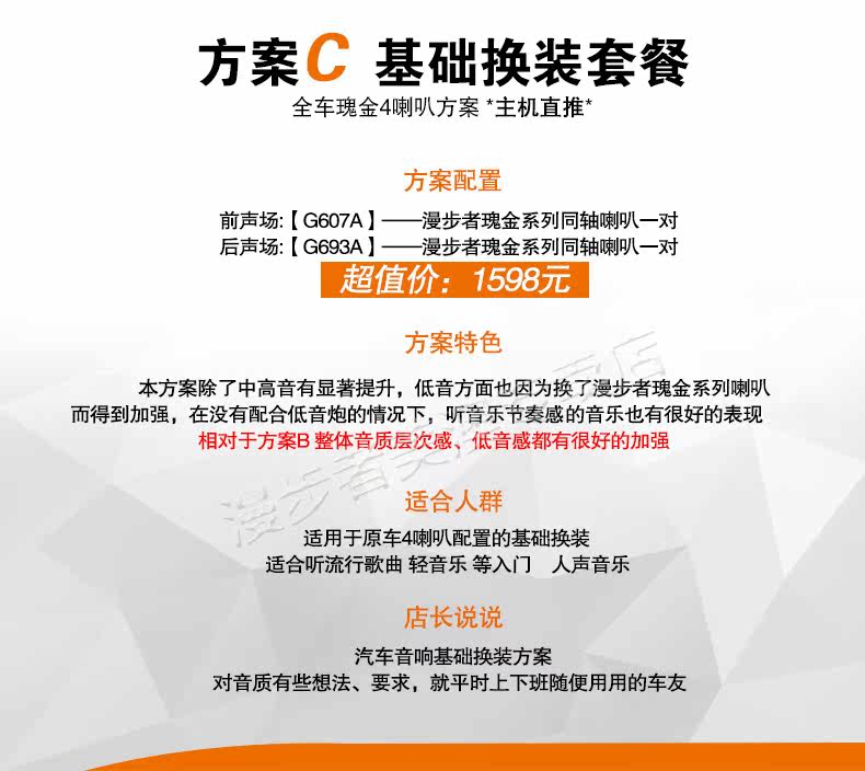 | Цвет: | Схема A: Схема громкоговорителя Gold 2 переднего звучания 799 Юань, План B: Все ораторы Che Xuanyin 4 1138 Юань, Схема C: Схема 4 динамиков всей автомобильной золотой системы - 1598 Юань |