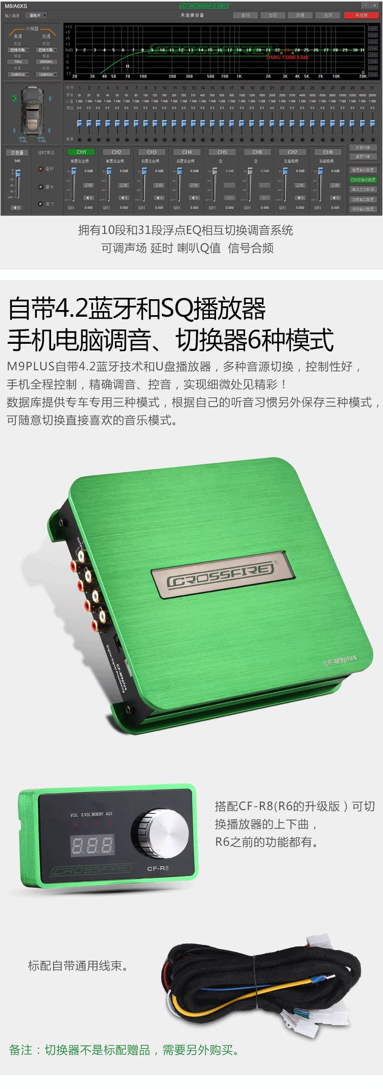 Процессор Cross Fire Automobile Port DSP 4 в 8 в 8 аудиопроцессоров CAR модифицированный CF-M9PLUS