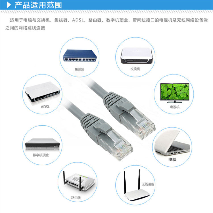 Сетевое соединение, проводка, концентрация оборудования или горизонтальные подсистемы, соединения между портом устройства и модульной перемычной системой, такие как: подключение к интерфейсу локальной сети между телекоммуникациями широкополосной модемом и беспроводным маршрутизаторам; и другое оборудование перейдет в интерфейс сетевой карты компьютера и т. Д. (Примечание. Эта последовательность линейки представляет собой универсальную структуру настройки конструкции прямой линии T568B и T568B, поэтому она не совместима с перекрестной межсочевой концом между двумя компьютерами).