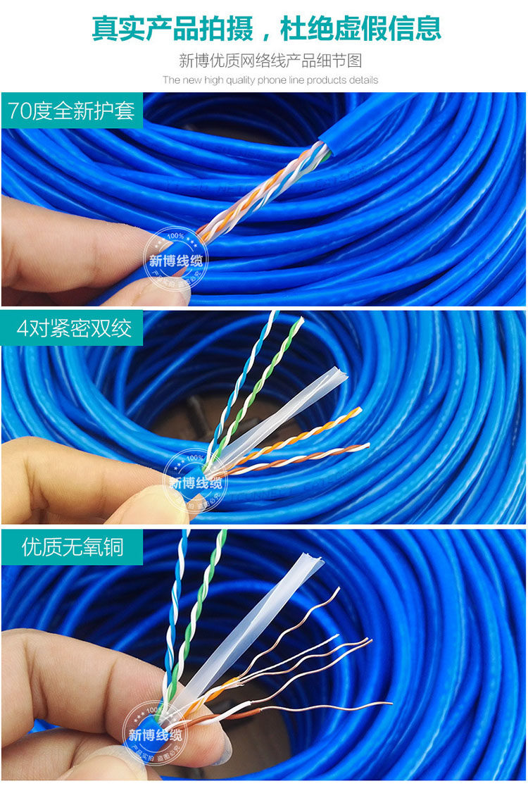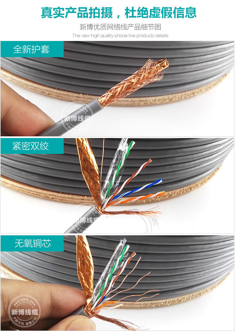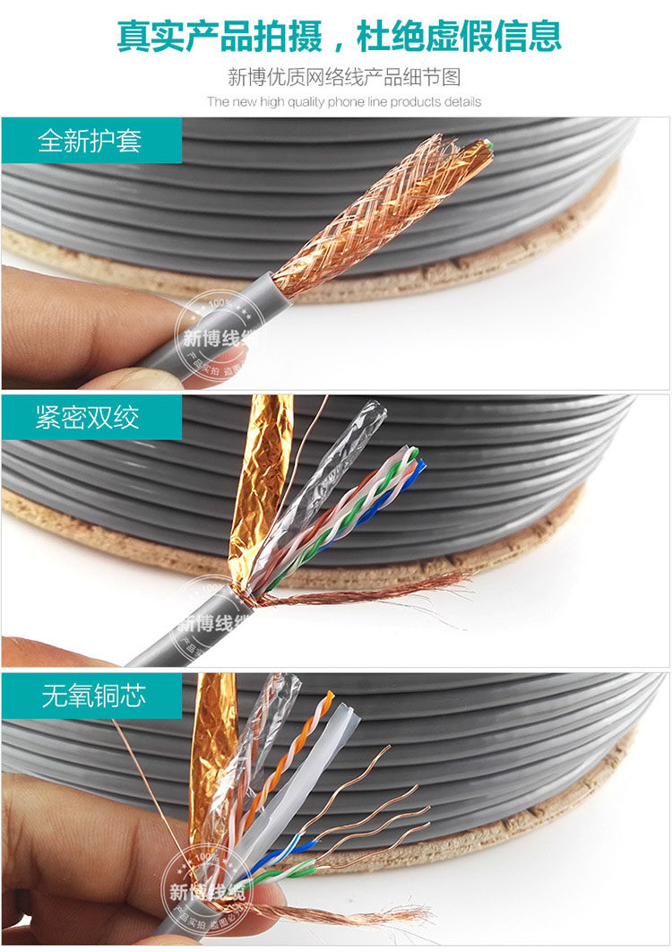 Сетевой кабель домохозяйства с высокой скоростью в помещении и на открытом воздухе в стране, не содержащей кислород, нексигеновая медная супер -пять или шесть типов 300 метров 300 метров Мониторинг питания POE