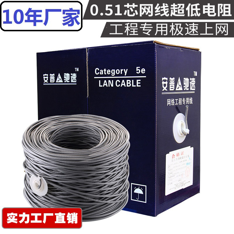 Огнестойкий сетевой кабель Anpu категории 5, инженерный сетевой кабель, чистая медь, 300-метровая коробка, линия мониторинга витой пары национального стандарта