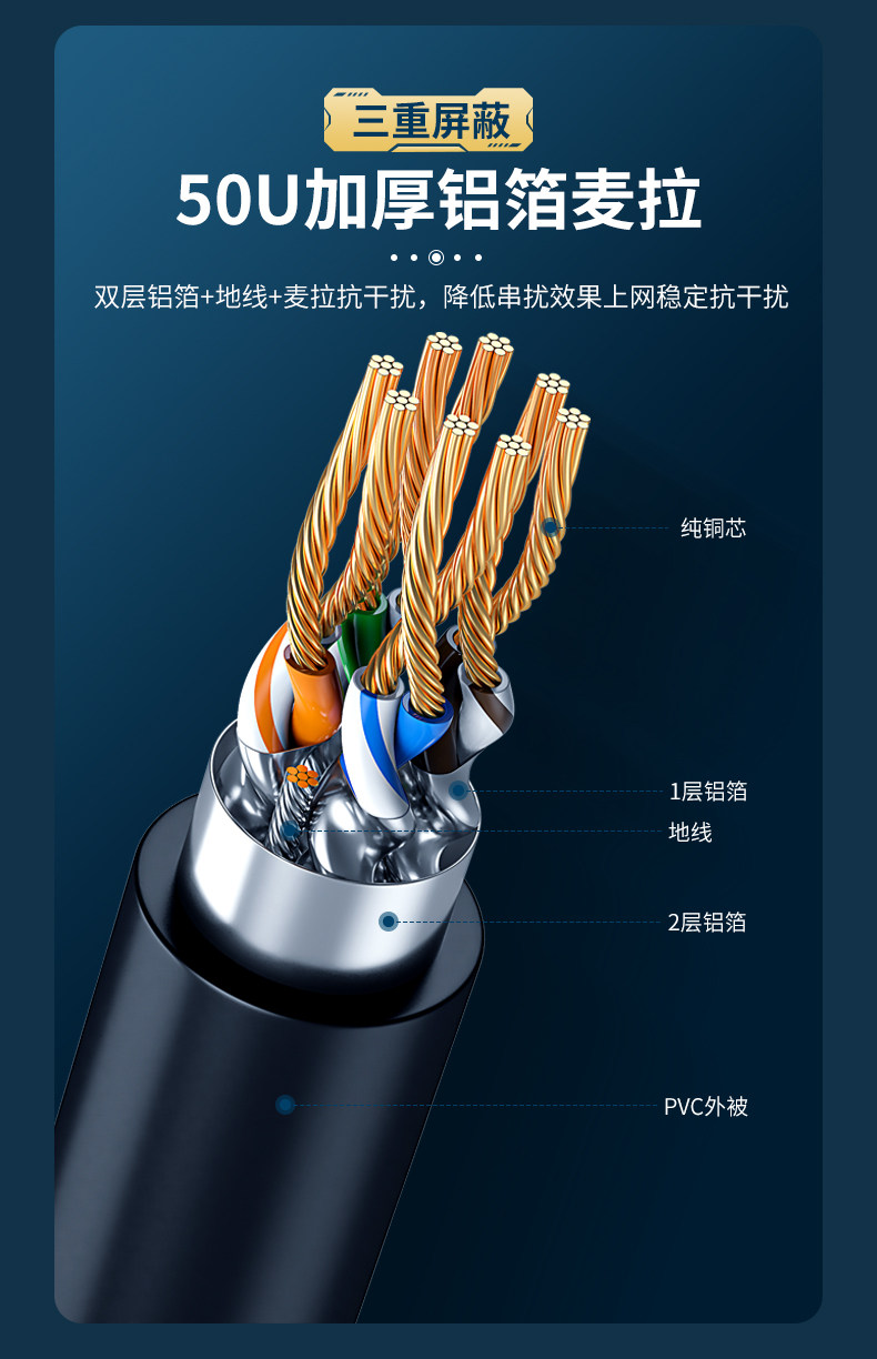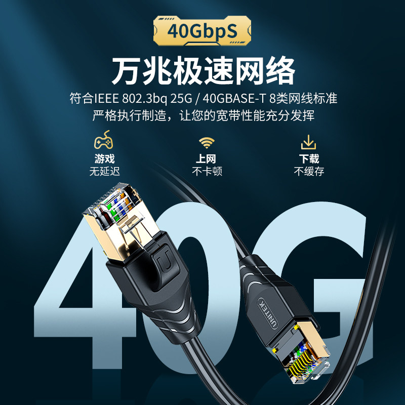 Превосходные восемь категорий сетевого кабеля 10M Двойной экранирование Cat8 Pure Copper Core Engineering High -скорость широкополосного сетевого кабеля