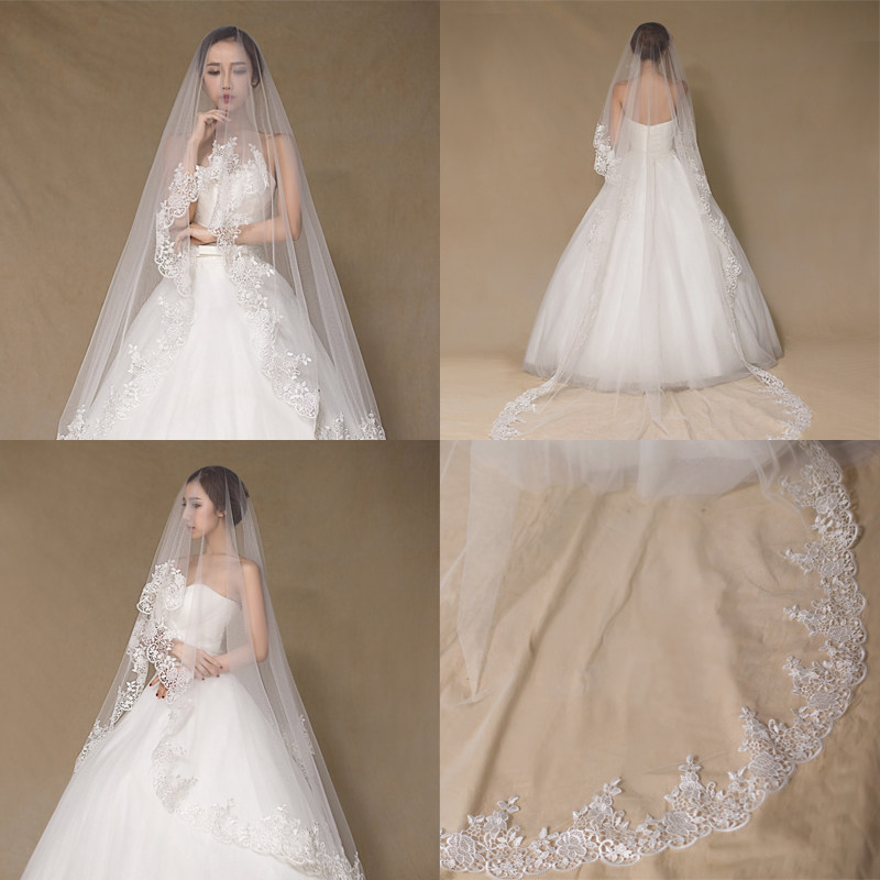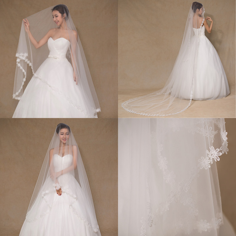 Фата невесты, корейские кружевные длинные блестки для ногтей, короткое свадебное платье, аксессуар, новая коллекция, кружевное платье, 3м