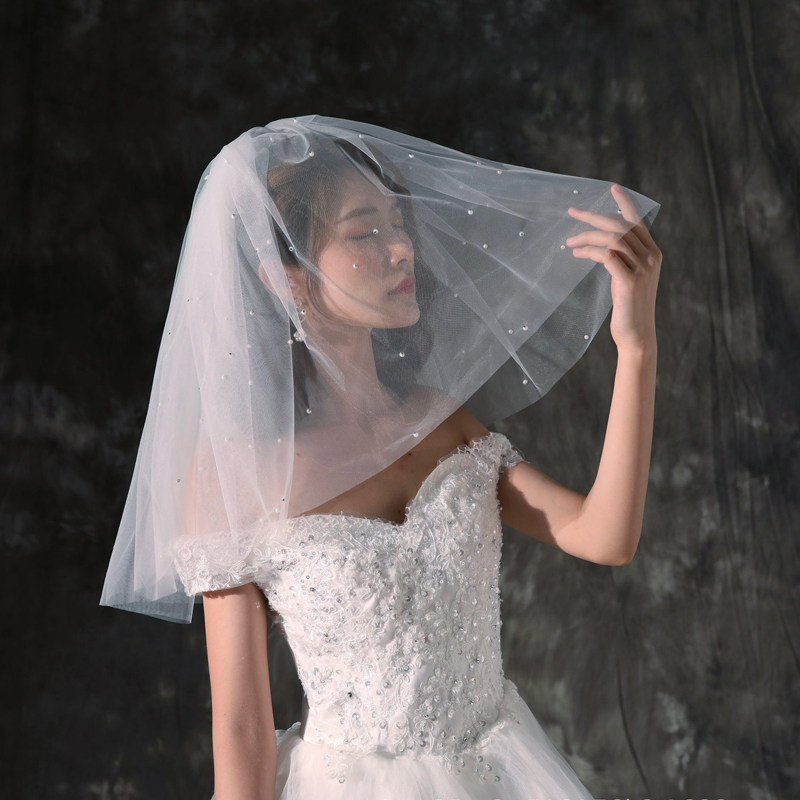 Жемчужная вуаль, короткий реквизит для фотосессии невесты, супер сказочные бусины, двойной слой, новый лес, пушистое свадебное платье, головной убор, бусины для ногтей