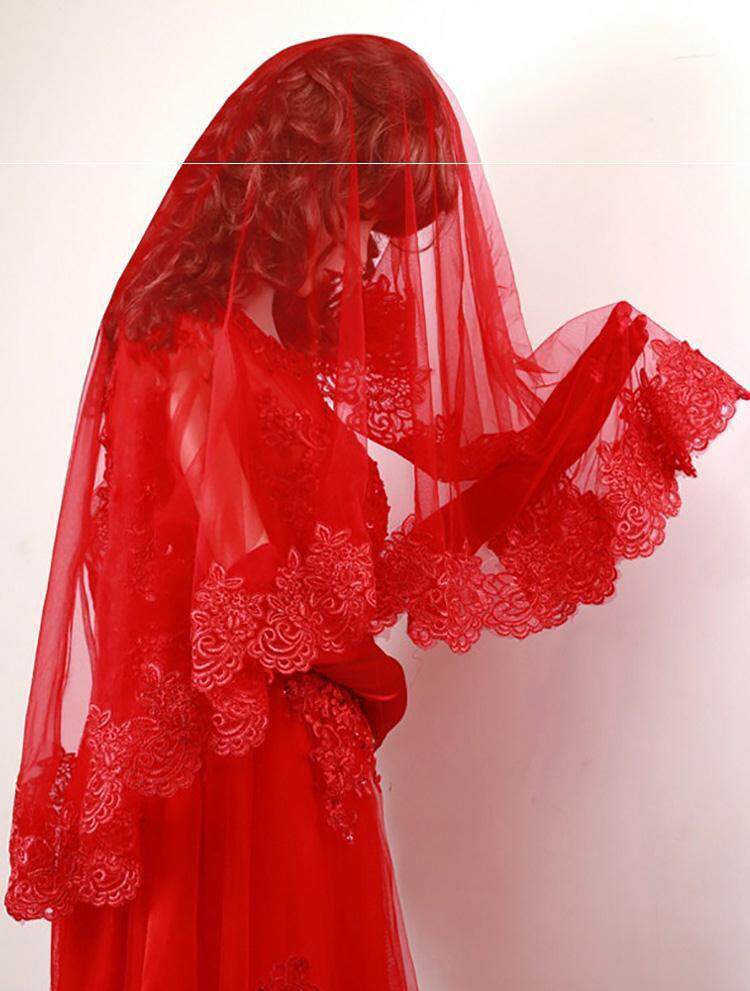 Red Yarn Hijada Xiuhe Red Hijab, свадебный полупрозрачный кружево 2020 Mas