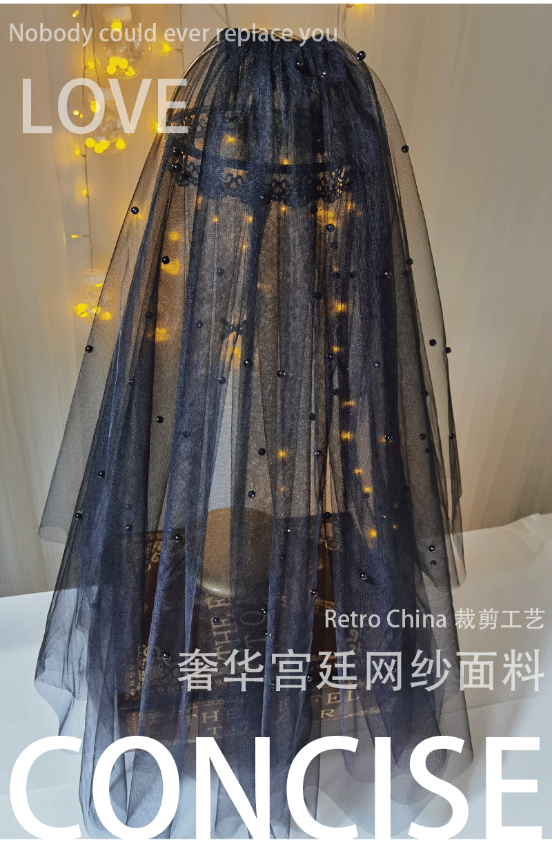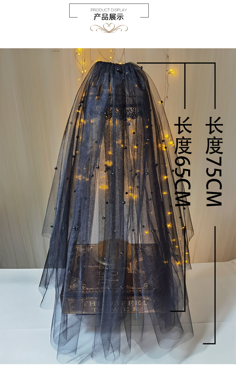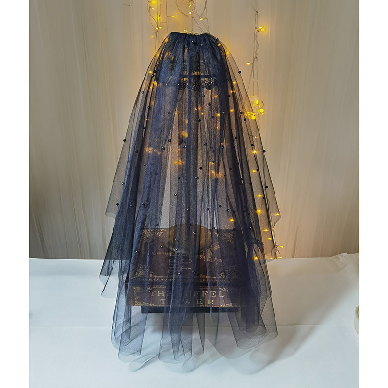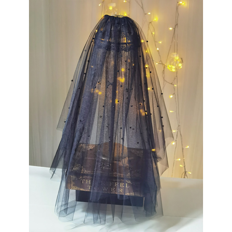 Черный ретро короткий аксессуар для волос для невесты, xэллоуин, косплей