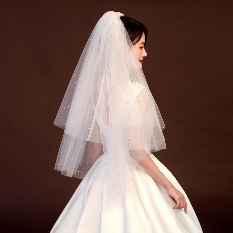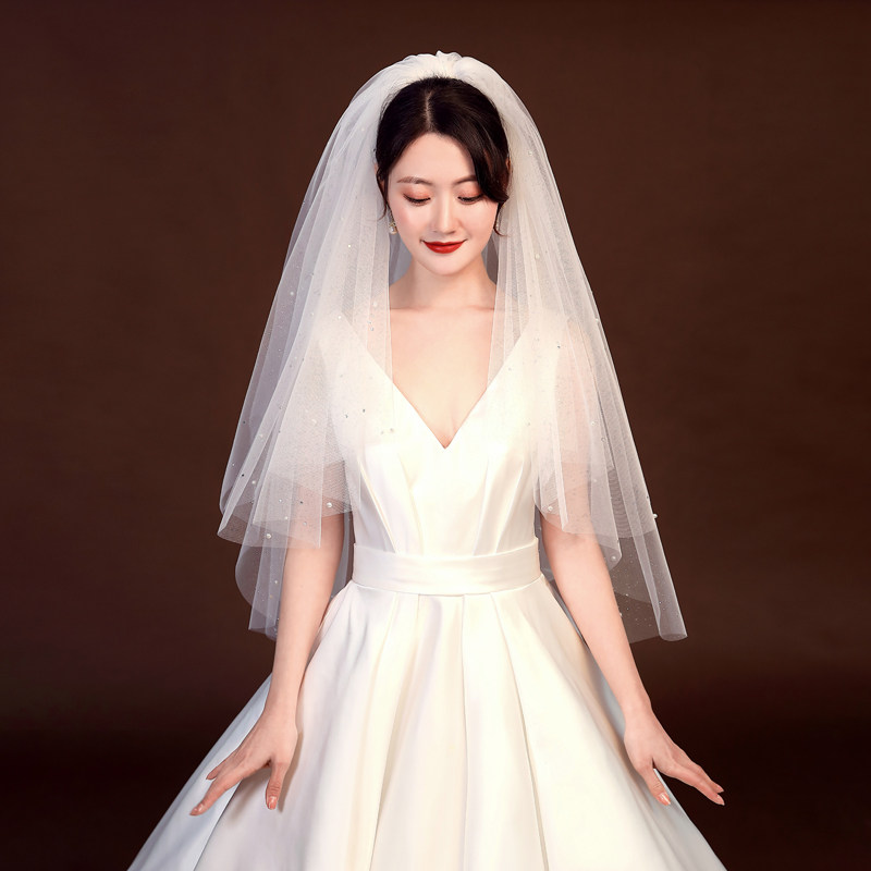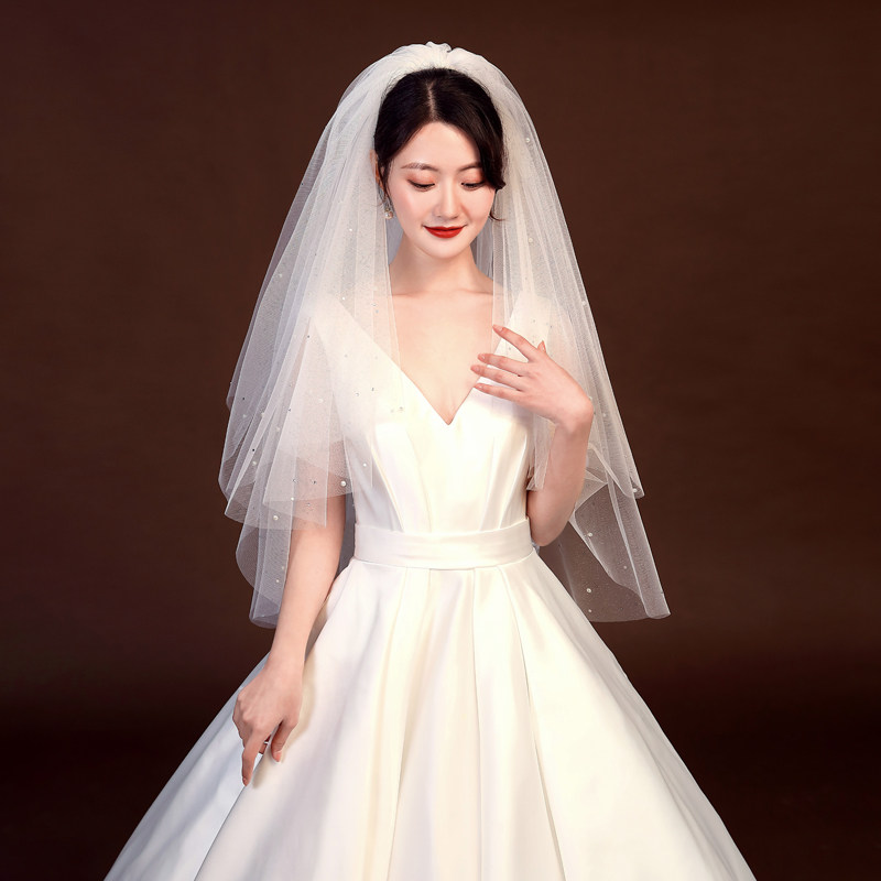 Свадебная фата, реквизит для фотосессии, короткое свадебное платье, сертификат, двухслойный жемчужный спрей, золотой головной убор в стиле ретро, супер фея
