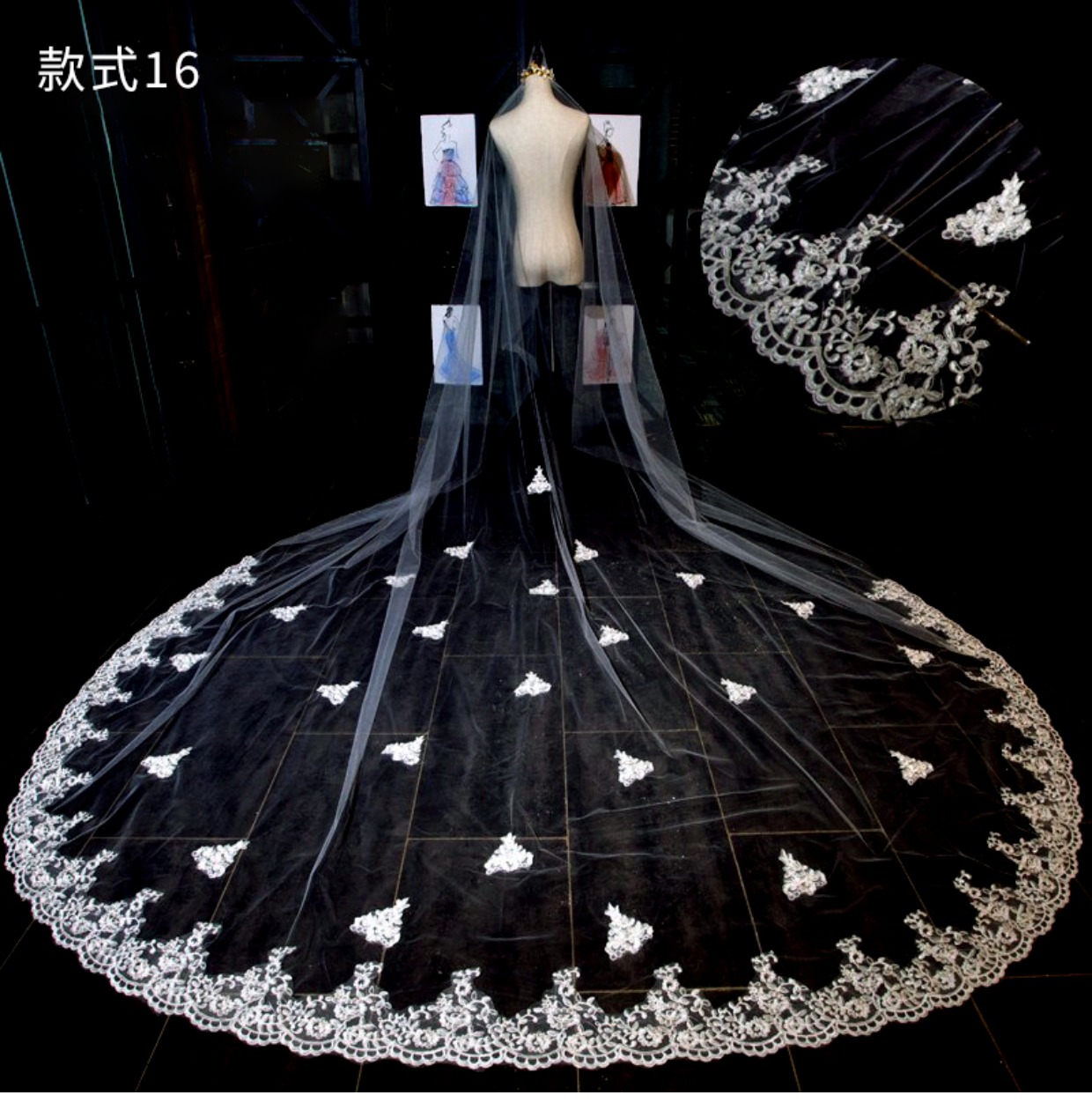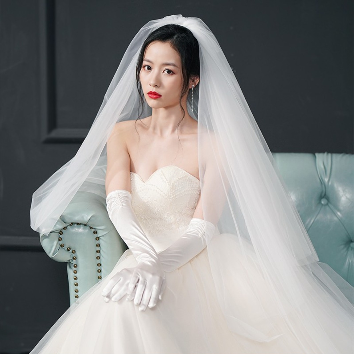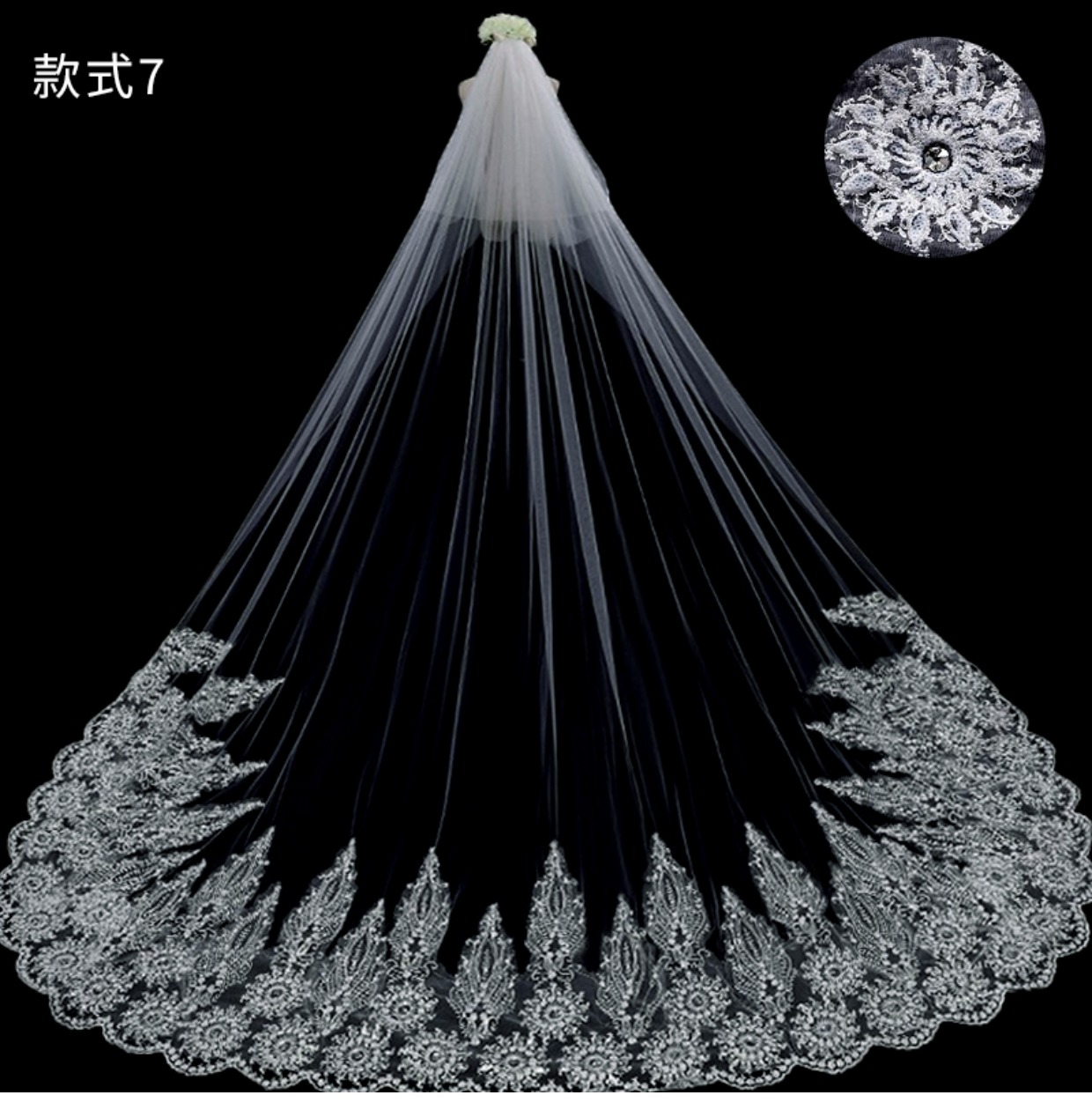 Тяжелая работа невеста вышла замуж за главную свадебную марлю, супер -фею, корейский длинное длинное хвостовое кружев