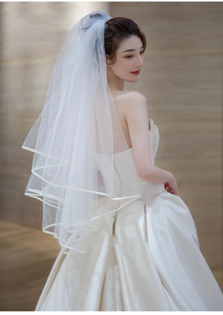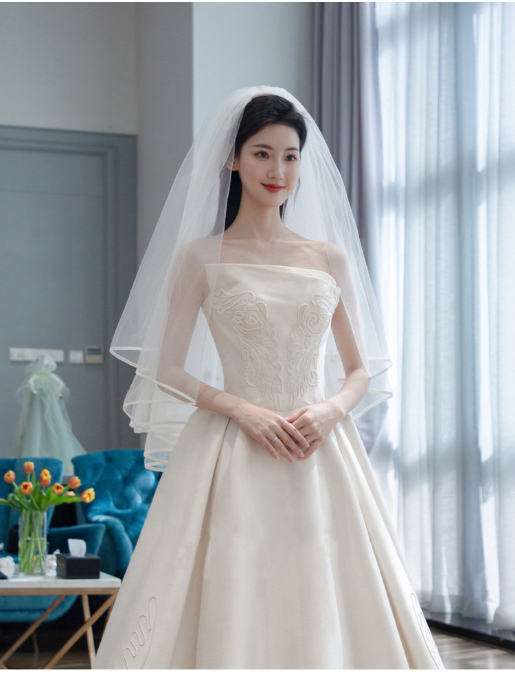 Двухэтажная корейская белая короткая лента для невесты, простой крой