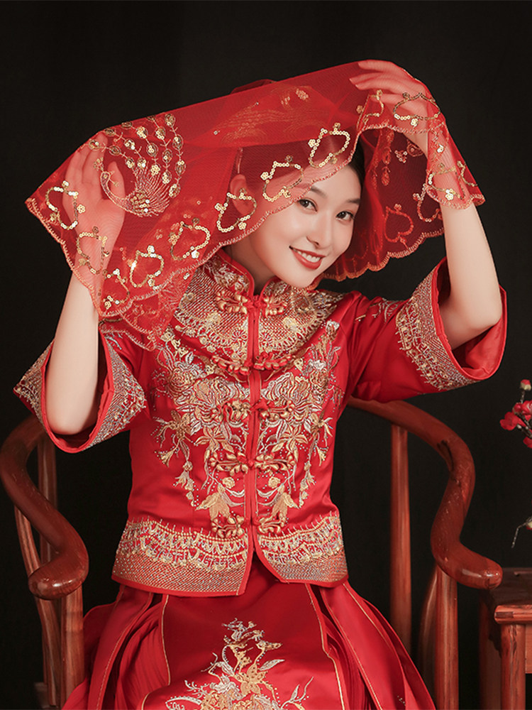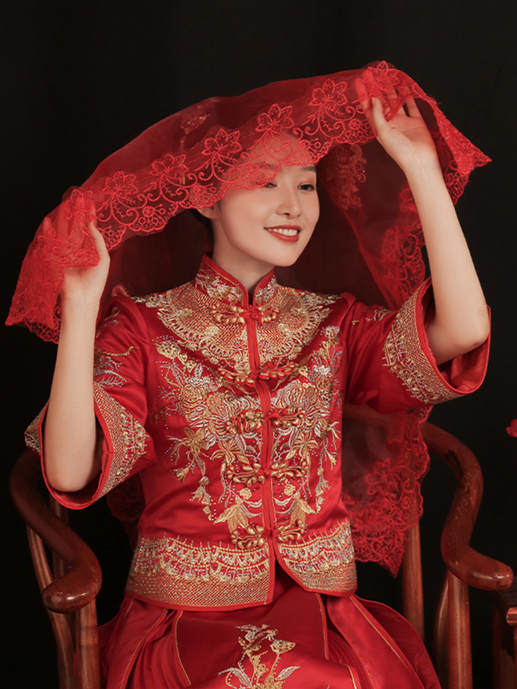 Новая невеста красная хиджада замужем за свадебной свадебной полупрозрачной шоу -шоу, The Red Head Sharf