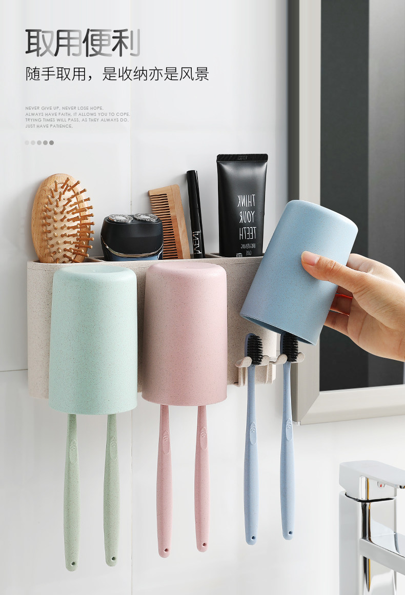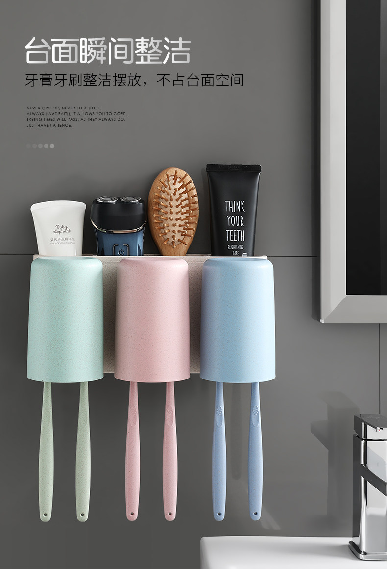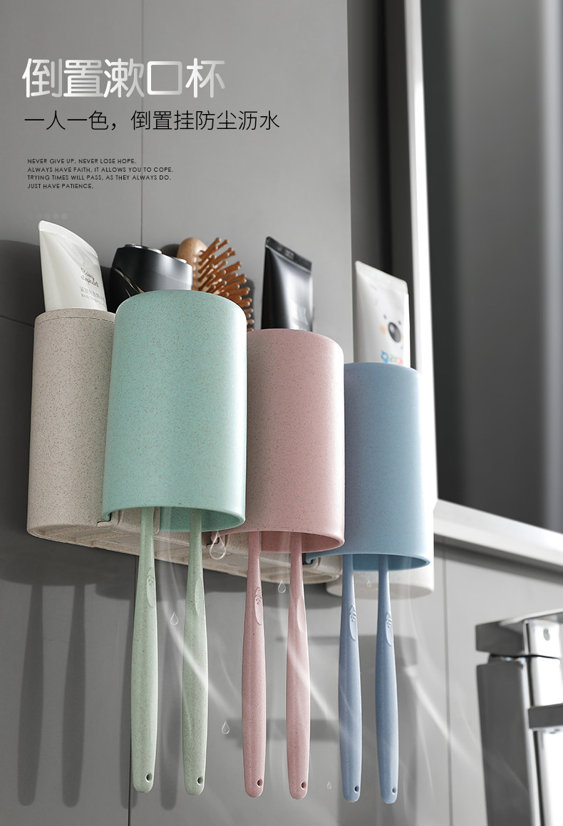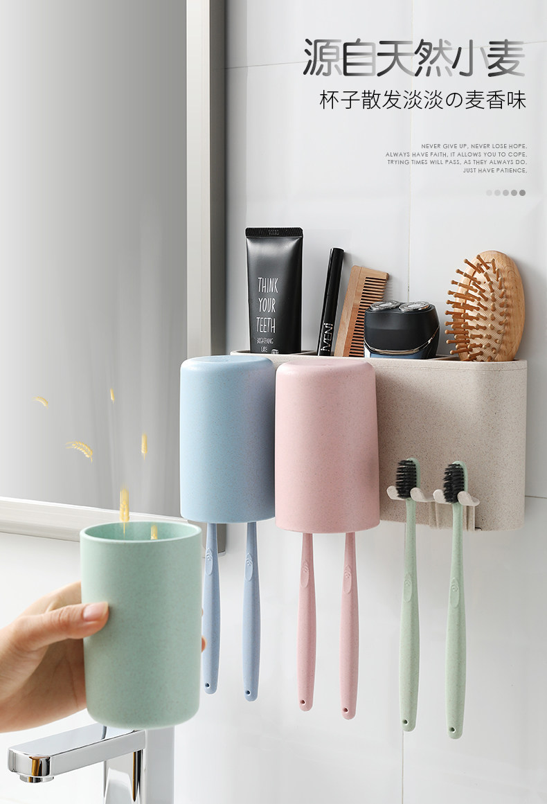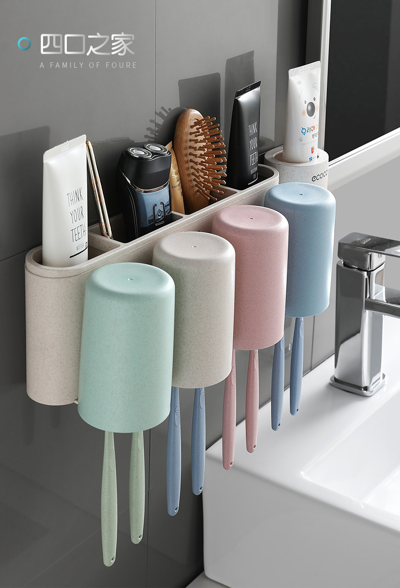 Зубная щетка установила стойку с отверстиями и чашками для полоскания для рта, стены на стене -поглощающий стен