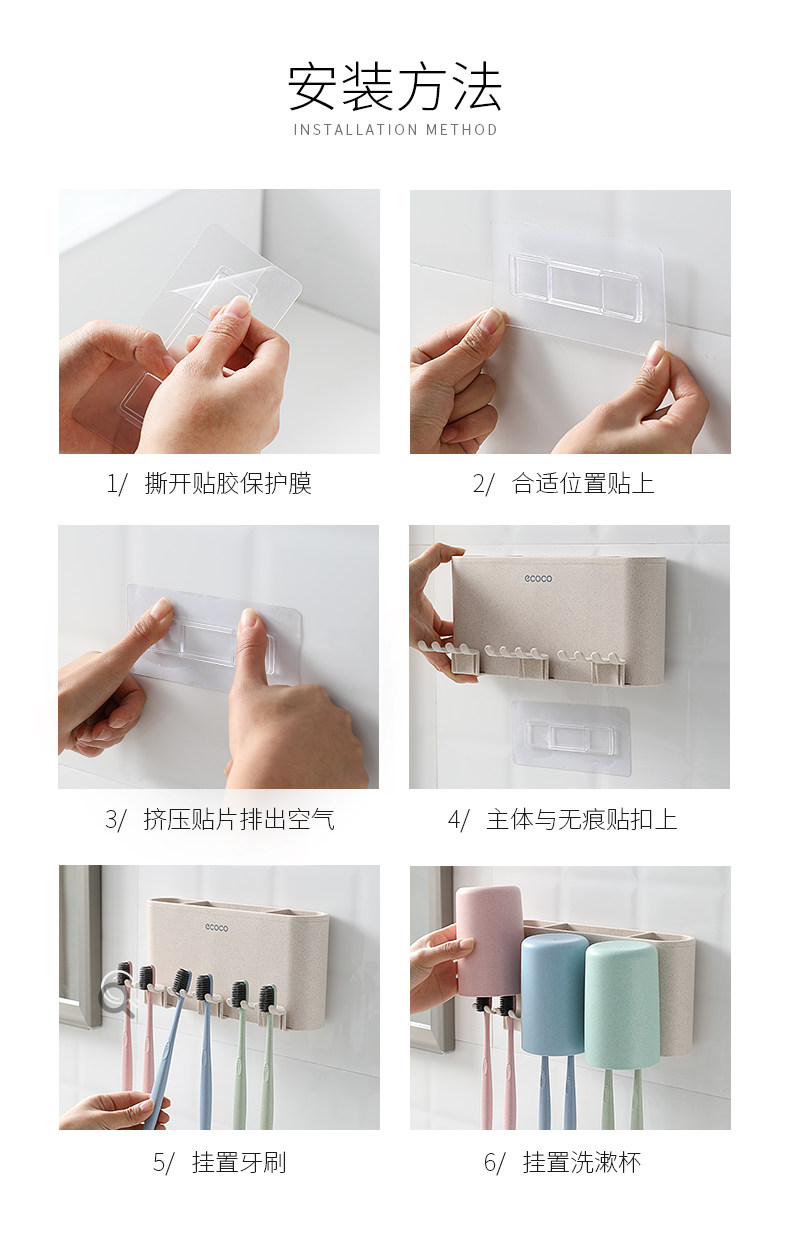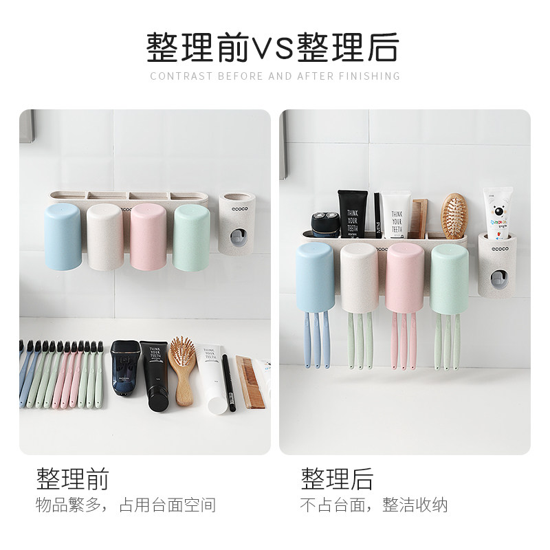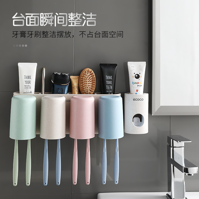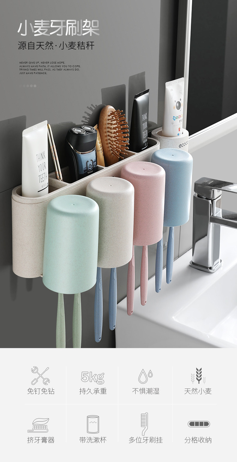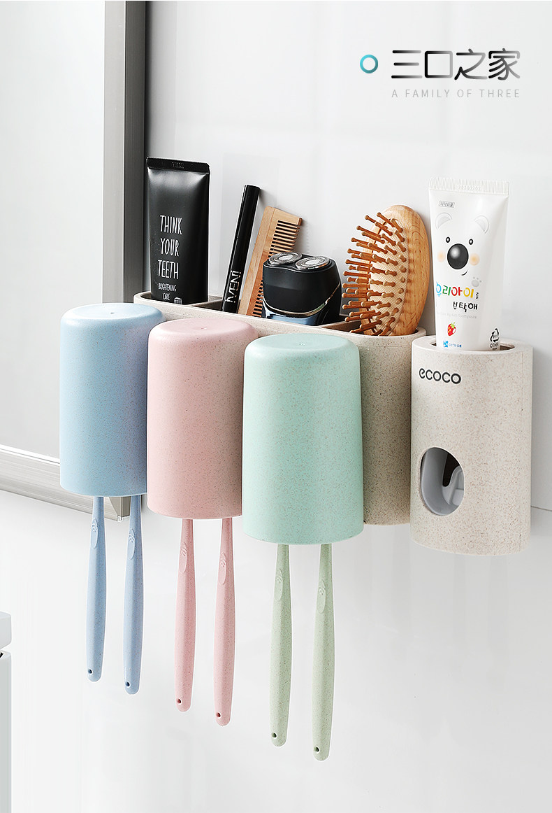 Зубная щетка установила стойку с отверстиями и чашками для полоскания для рта, стены на стене -поглощающий стен