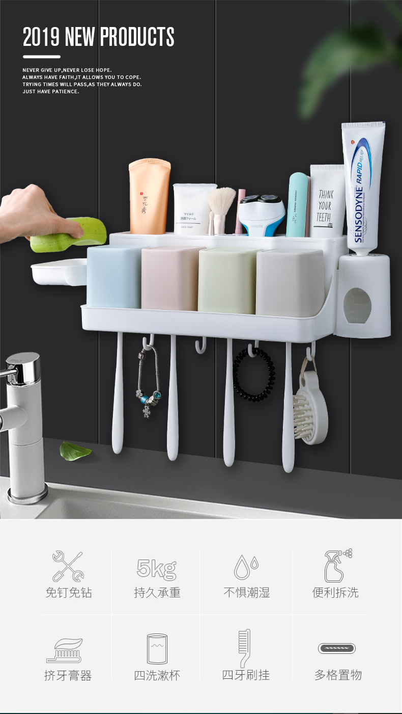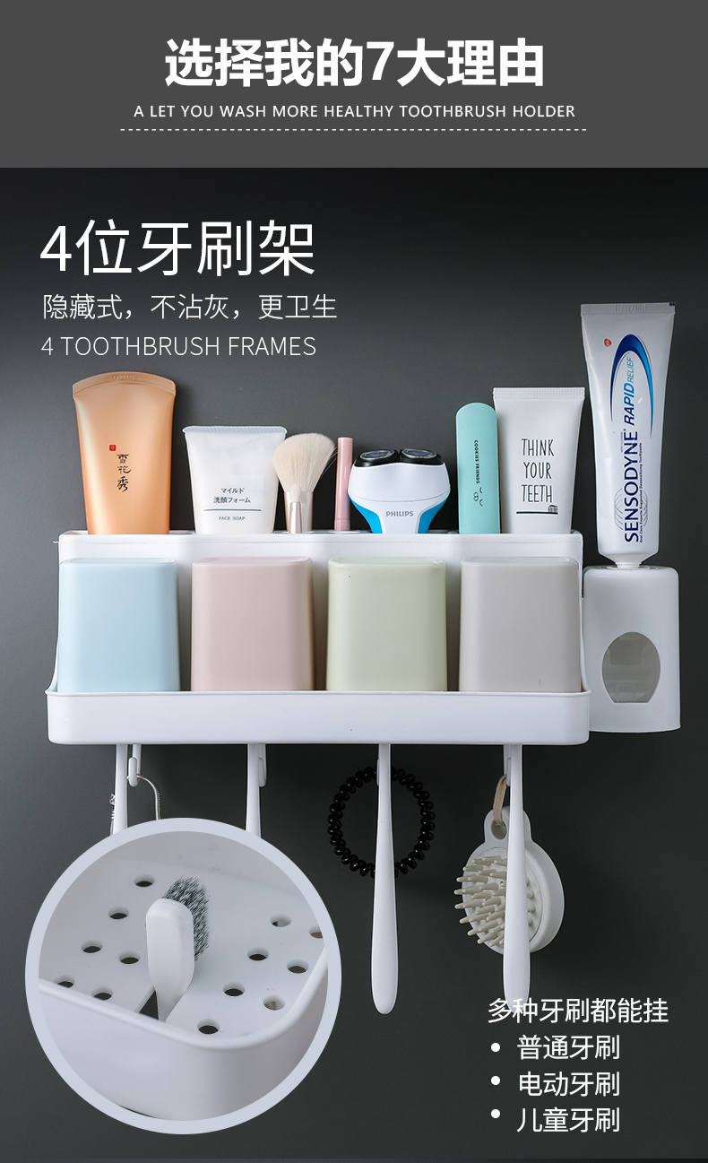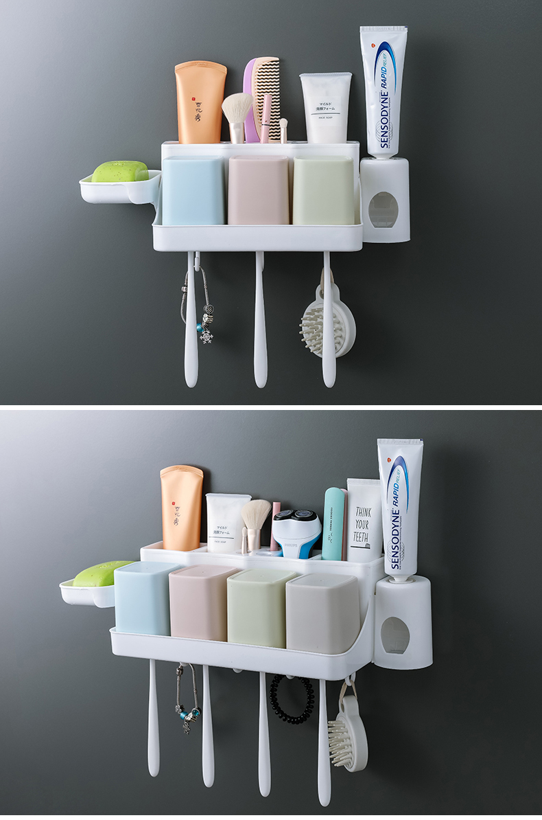Зубная щетка установила стойку с отверстиями и полосками полоскания для полоскания для полоска