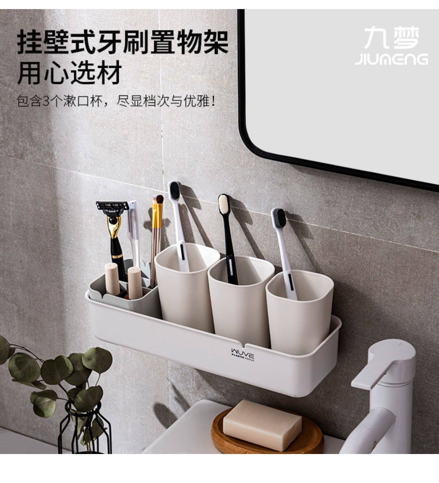 Зубная щетка установила стойку с отверстиями и чашками для жидкости для чистки чашки висящих стен
