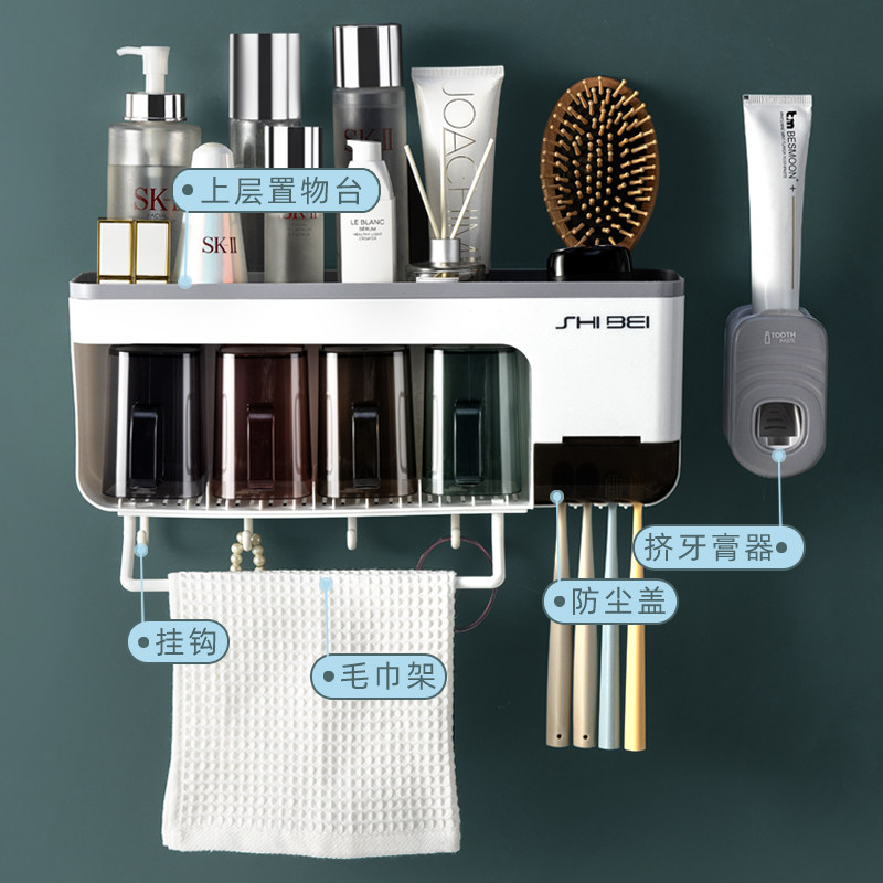 - 4 стакана стойки зубной щетки+сжимающая зубная паста [Свободная удара/перевернутая дренажная/количественная зубная паста]