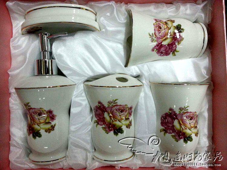 Бесплатная доставка для полоска рта в керамическая ванная комната пять -набор для ванной комнаты сантехничальная посуда, костюма для мытья набор для кисти чашка
