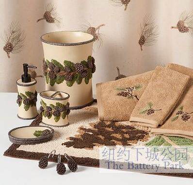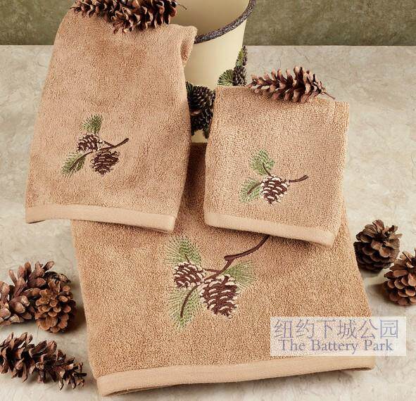 Комплект для ванной комнаты для ванной комнаты в сосновой конусе из озера Ташуо Tasko Tu купальные полотенца всегда заставляют людей связывать костер камина и тепло дома. Этот трехмерный скульптивный комплект для ванной Полем