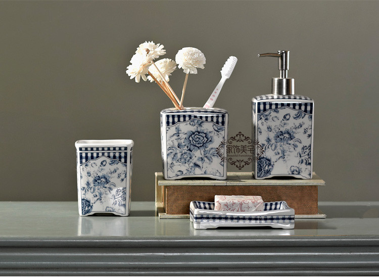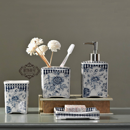 Miyu New Product Designer Model Room -стиль китайского стиля сине -белая керамическая ванная комната с четырьмя предметами скраба