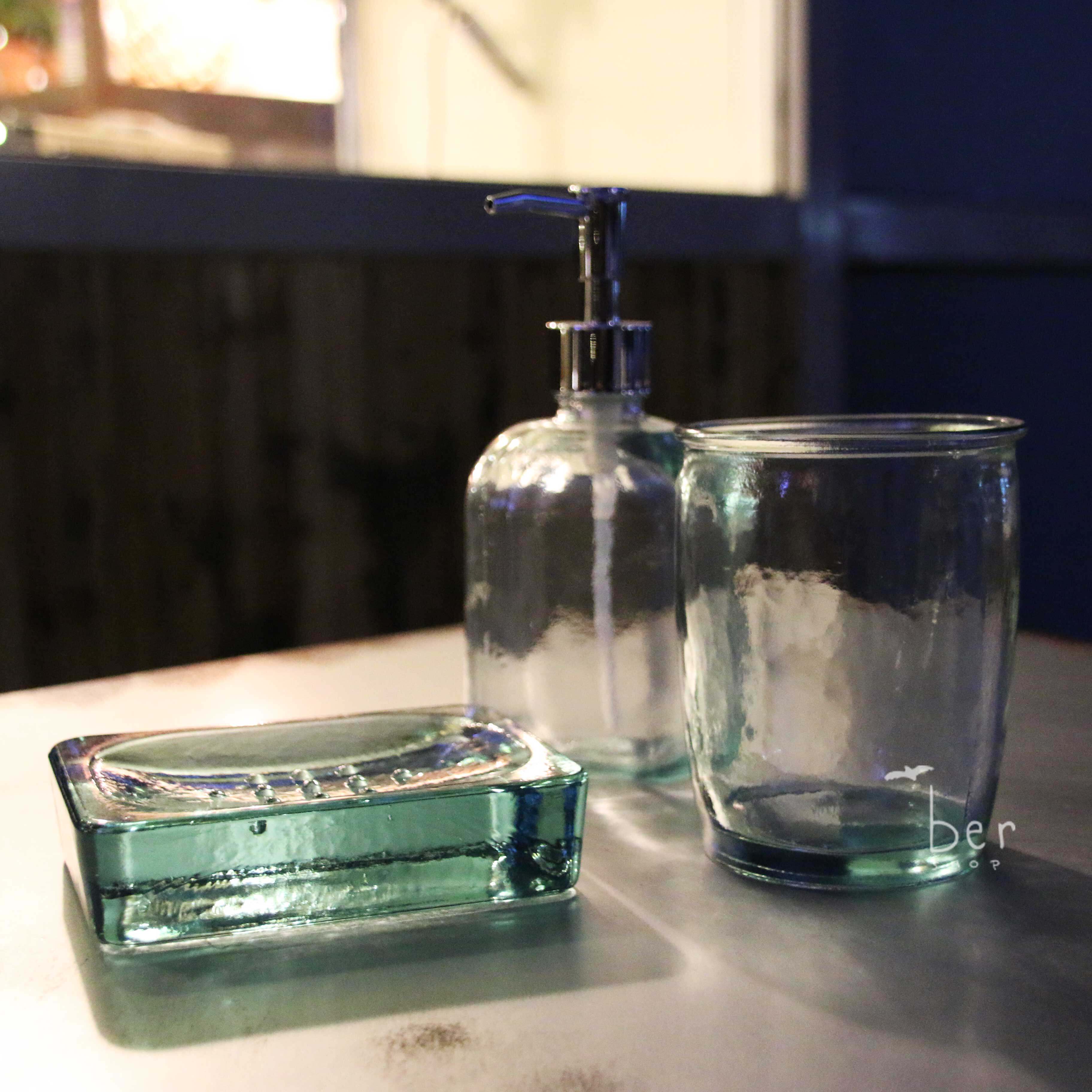 Стеклянный комплект ручной работы, мыльница, зеленый ополаскиватель для рта, Испания, 3 шт, простой и элегантный дизайн