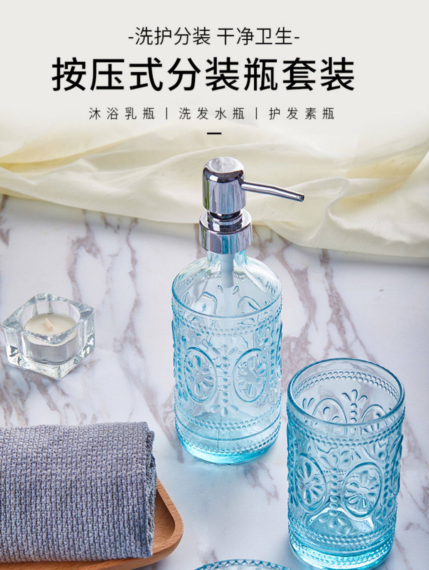 Стеклянный гигиенический санитайзер для рук, тара, бутылка, мыло для домашнего использования, мыльница, ополаскиватель для рта, комплект, европейский стиль, 3 предмета