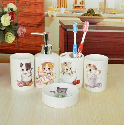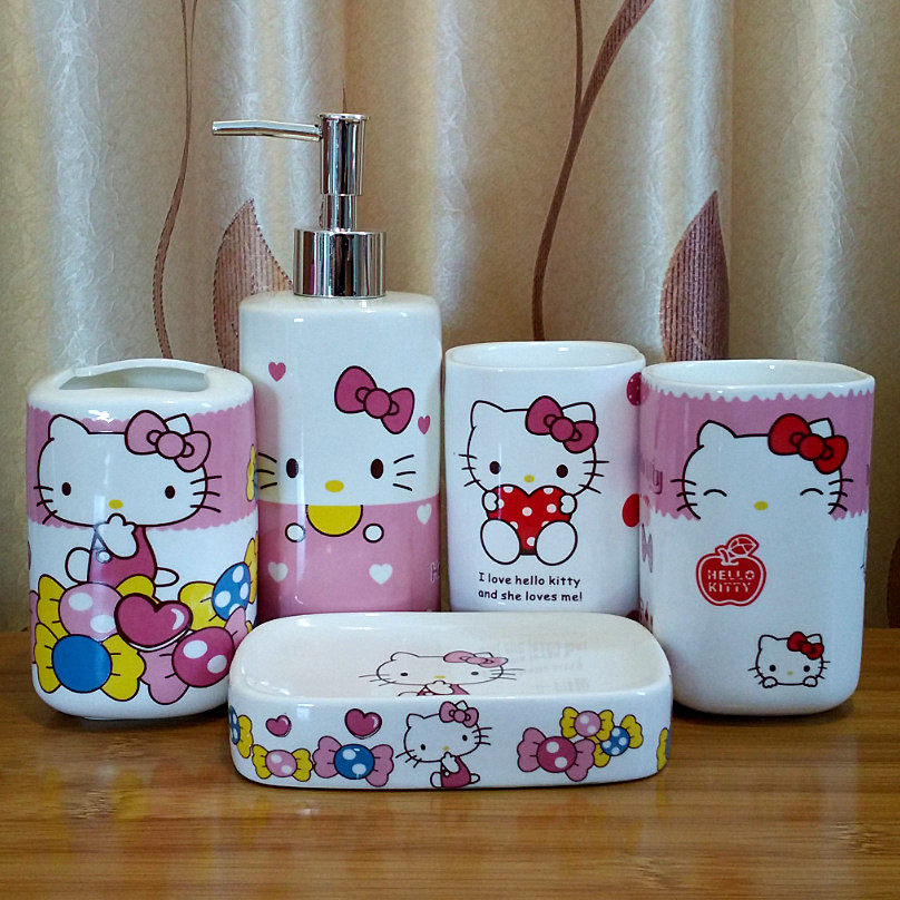 Hello kitty, мультяшный керамический комплект, ополаскиватель для рта, зубная щетка, 5 шт