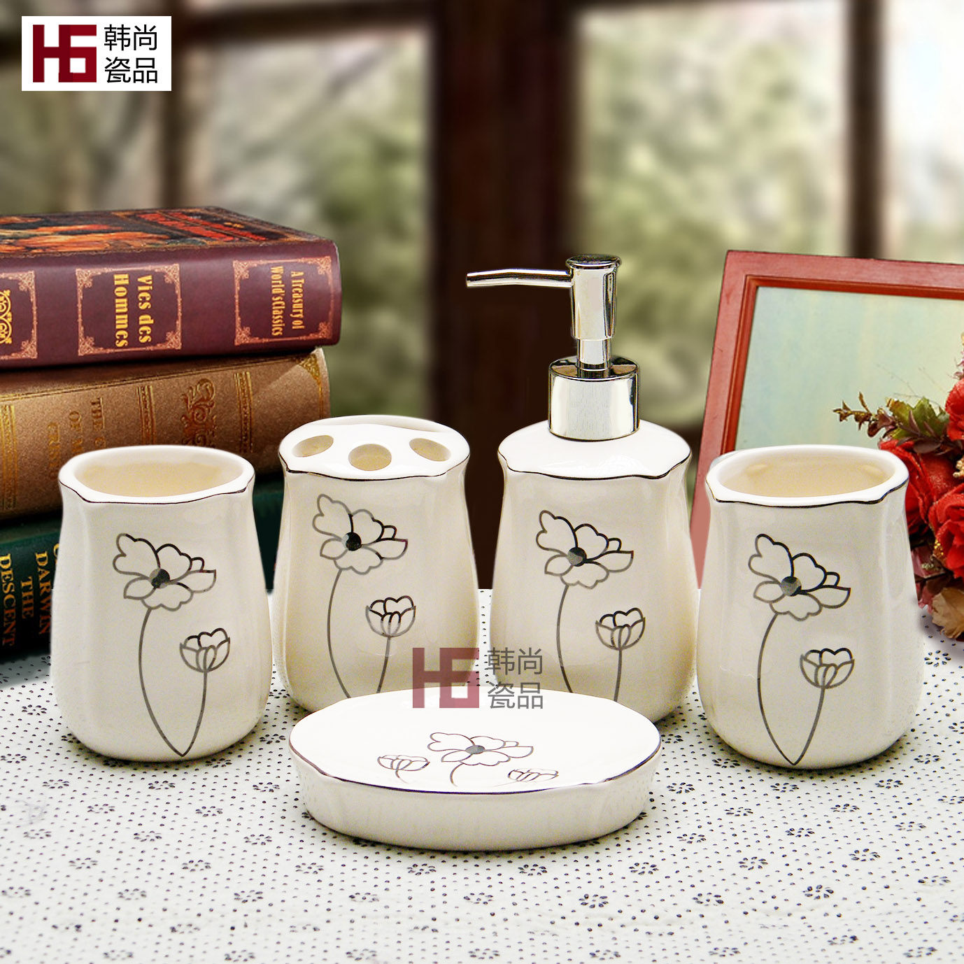 Керамический комплект, красный ополаскиватель для рта, легкий роскошный стиль
