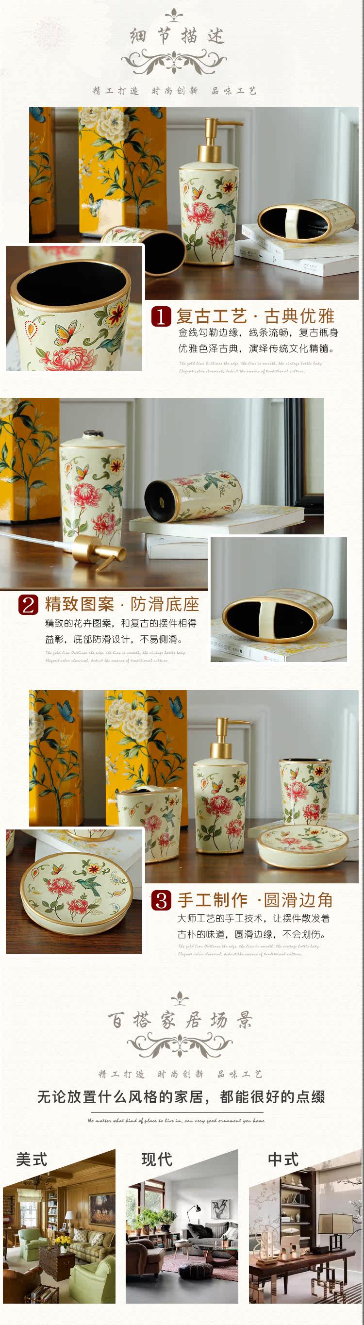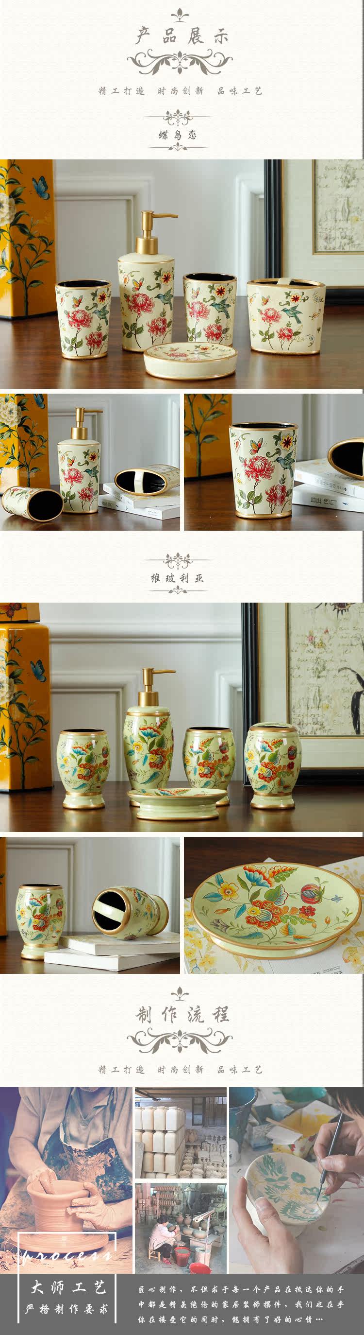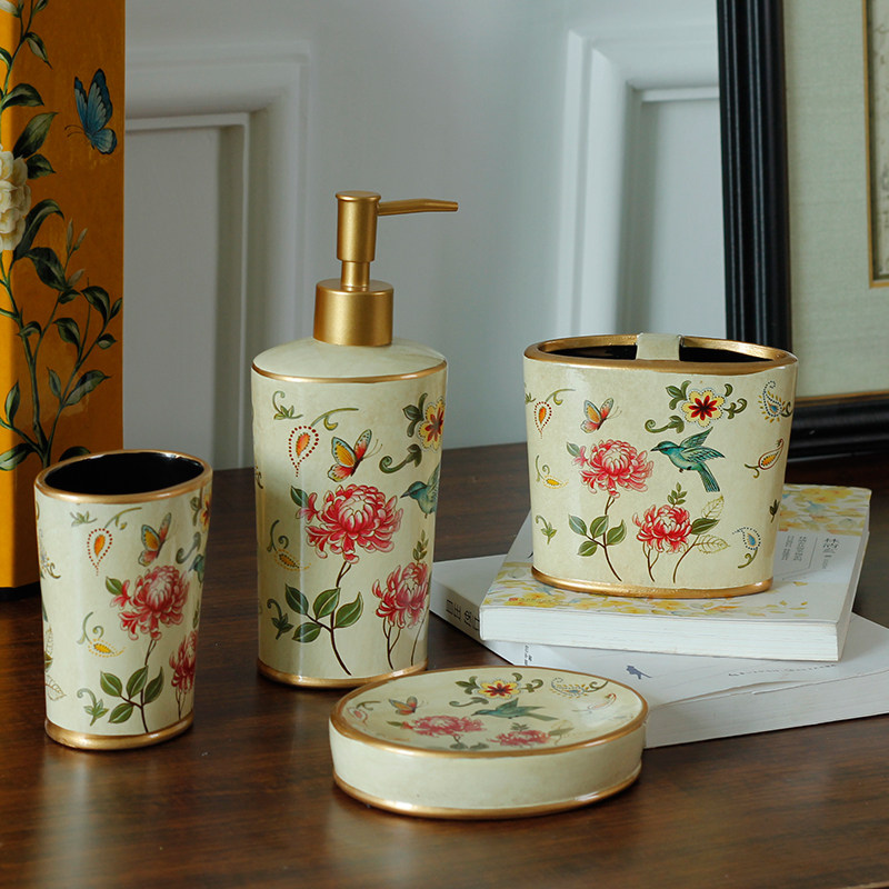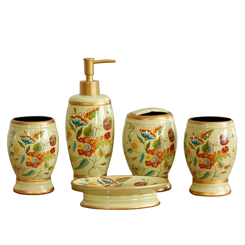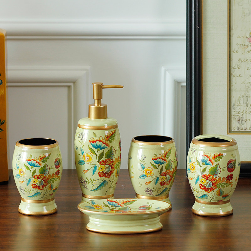 Американское керамическое мыло блюдо для ванной комнаты туалет из туалета из пяти частей для ванной комнаты для ванной комнаты европейский набор бутылок для лосьона