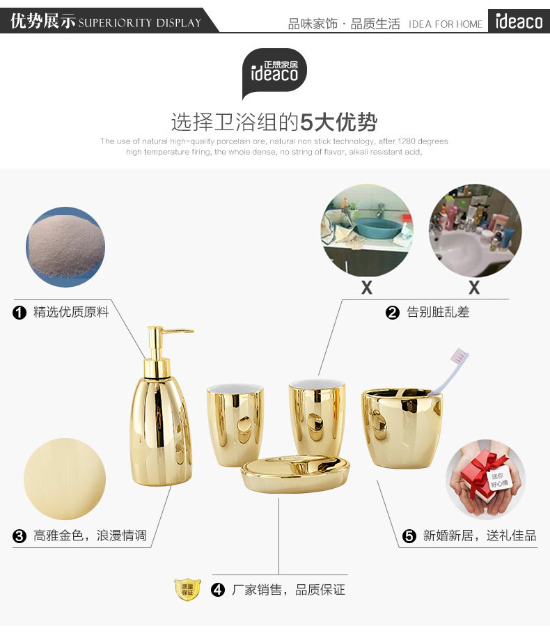 Креативный золотой керамический комплект, ополаскиватель для рта, легкий роскошный стиль, европейский стиль