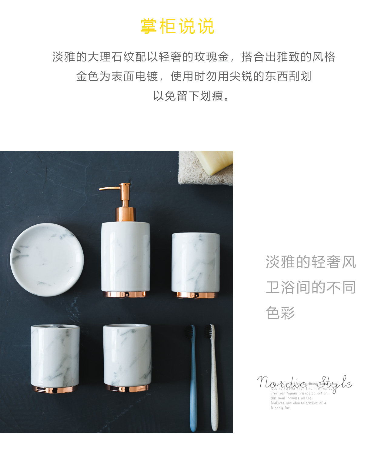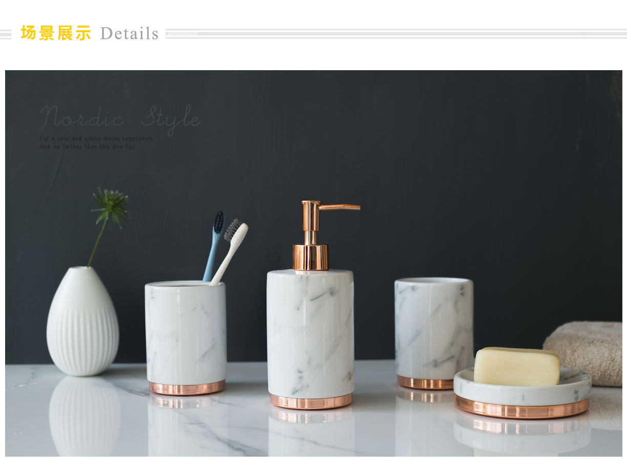 Купить товары Керамический набор для ванной комнаты из пяти предметов, Роскошный набор для умывания под мрамор, Набор из пяти предметов для ванной комнаты, Простой скандинавский набор для ванной комнаты