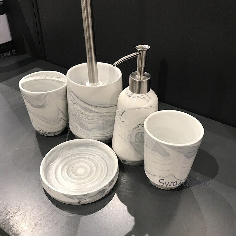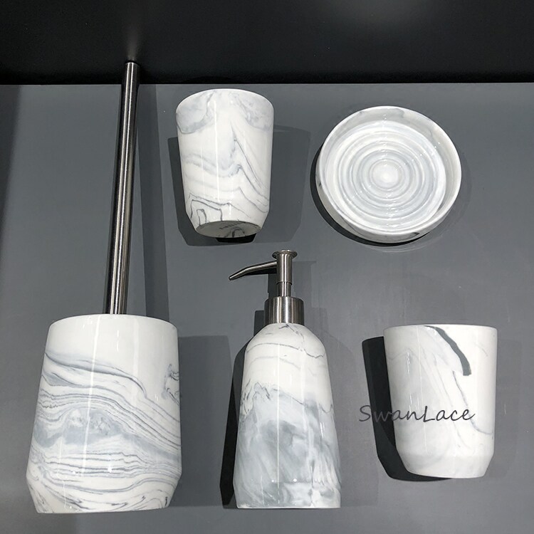 Мраморный керамический туалет, зубная щетка, ополаскиватель для рта, лосьон, материал