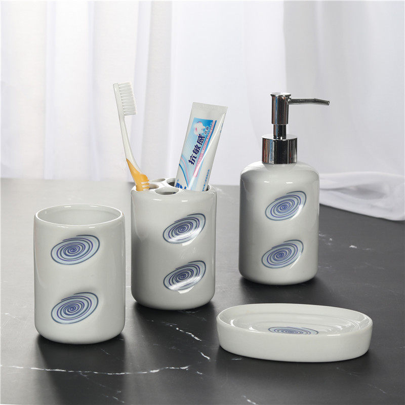 Европейский стиль ванной комнаты для туалетных принадлежностей модельная комната для ванной комнаты качели рукой -на руку с туалетом, простой керамический чистящий четырех