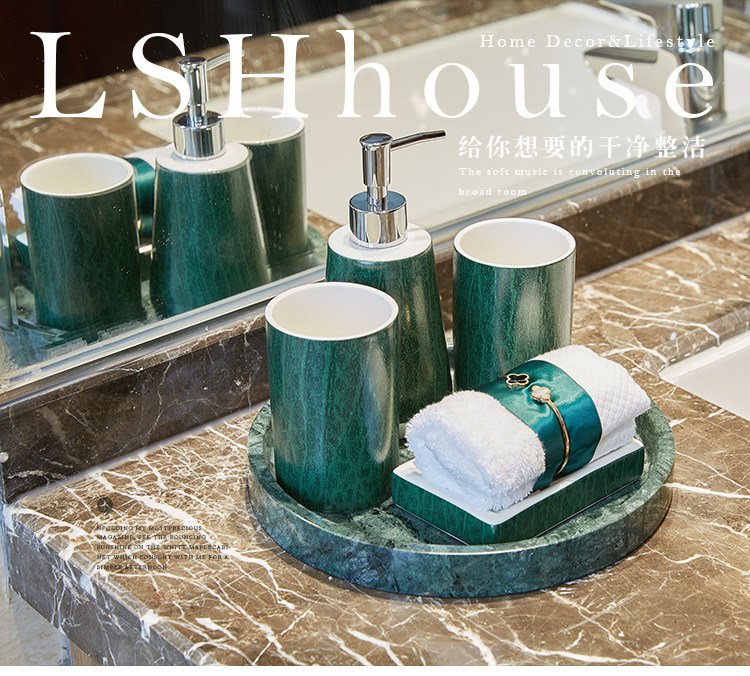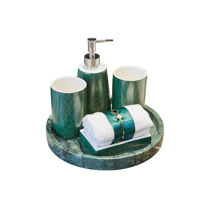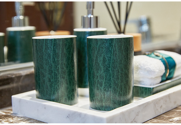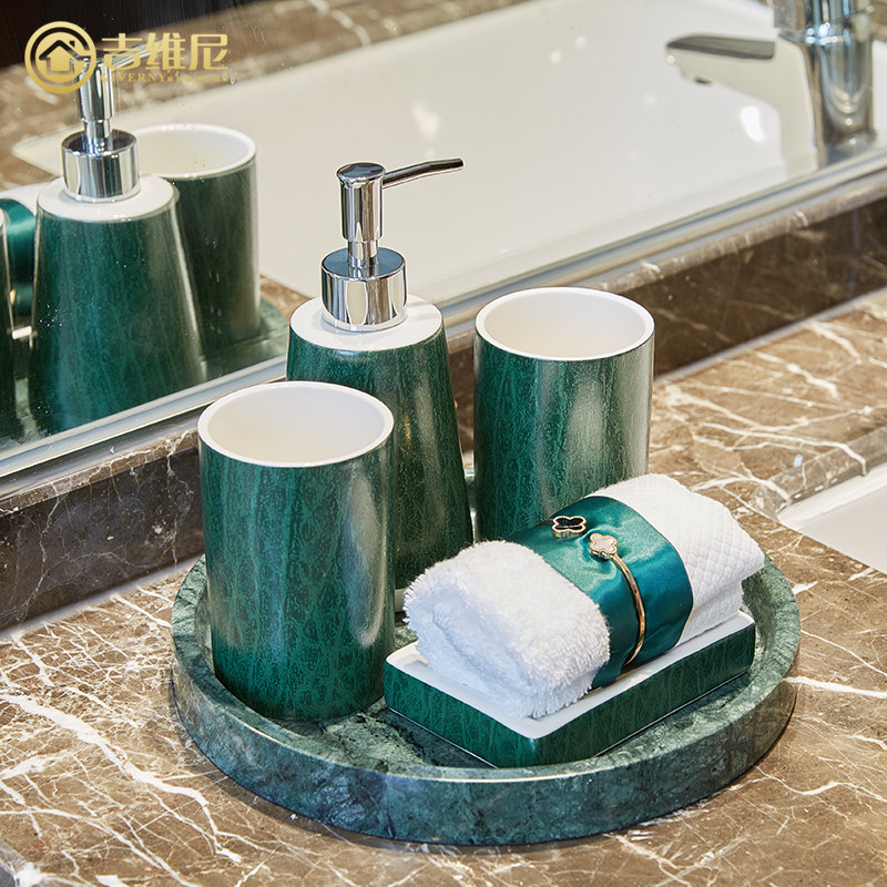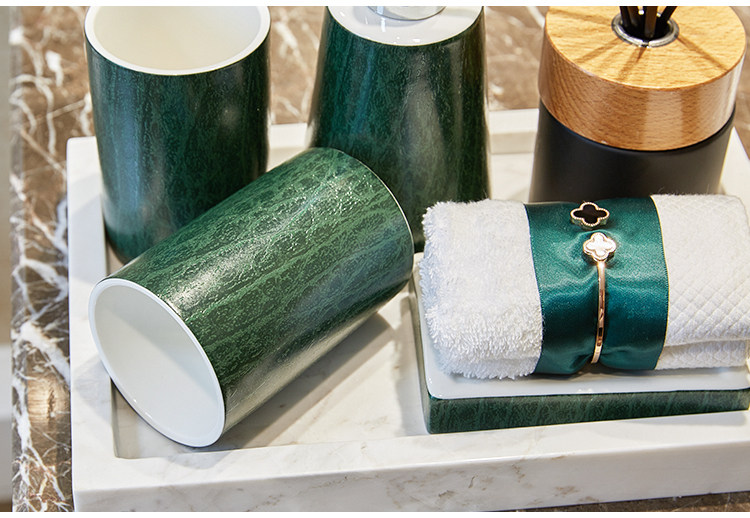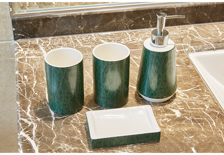 Американская туалет ванной комнаты, ванная комната с четырьмя керамическими темно -зелеными элегантными европейски