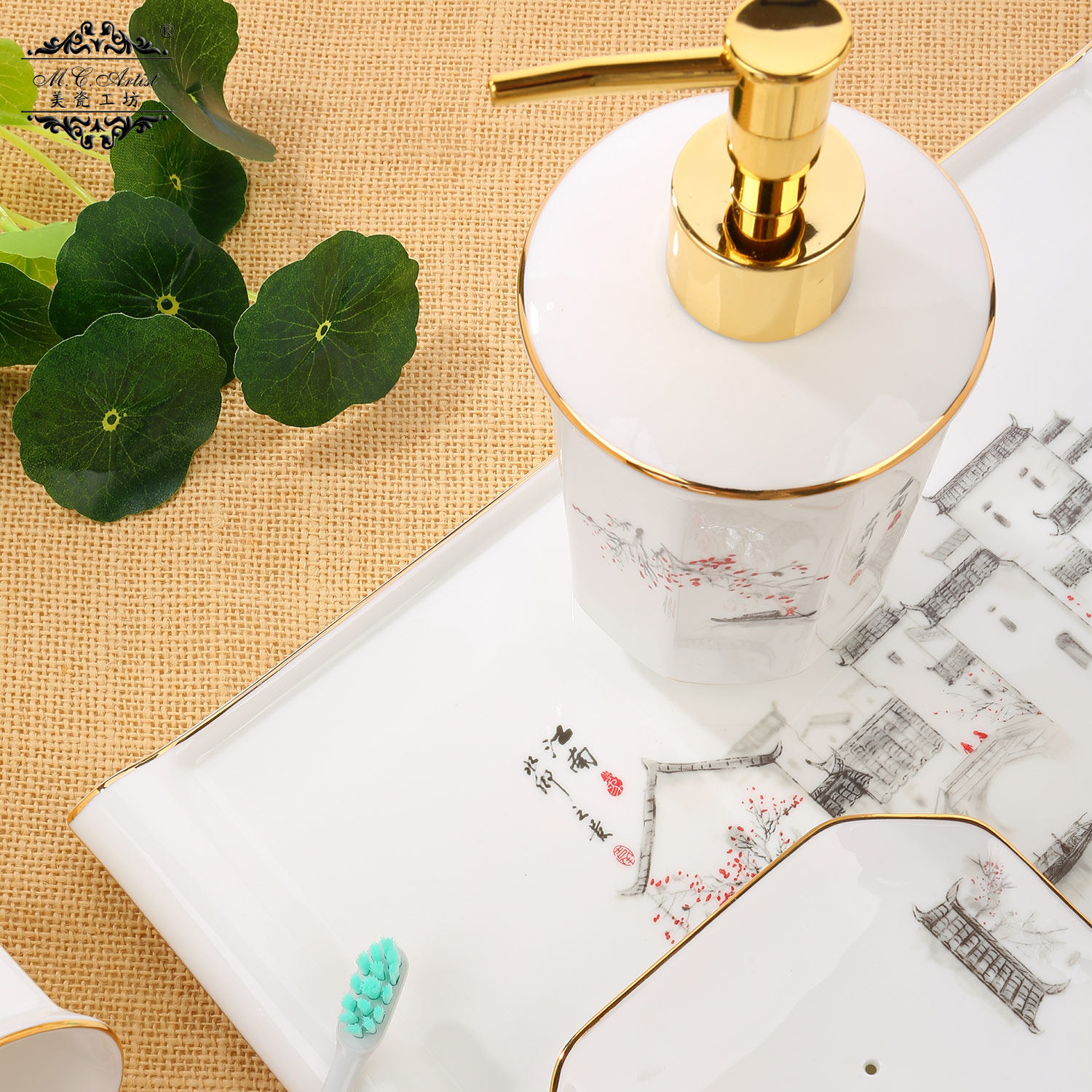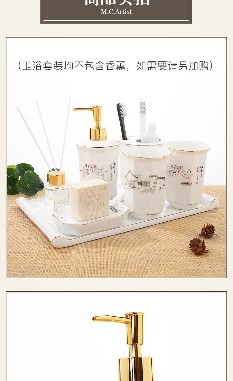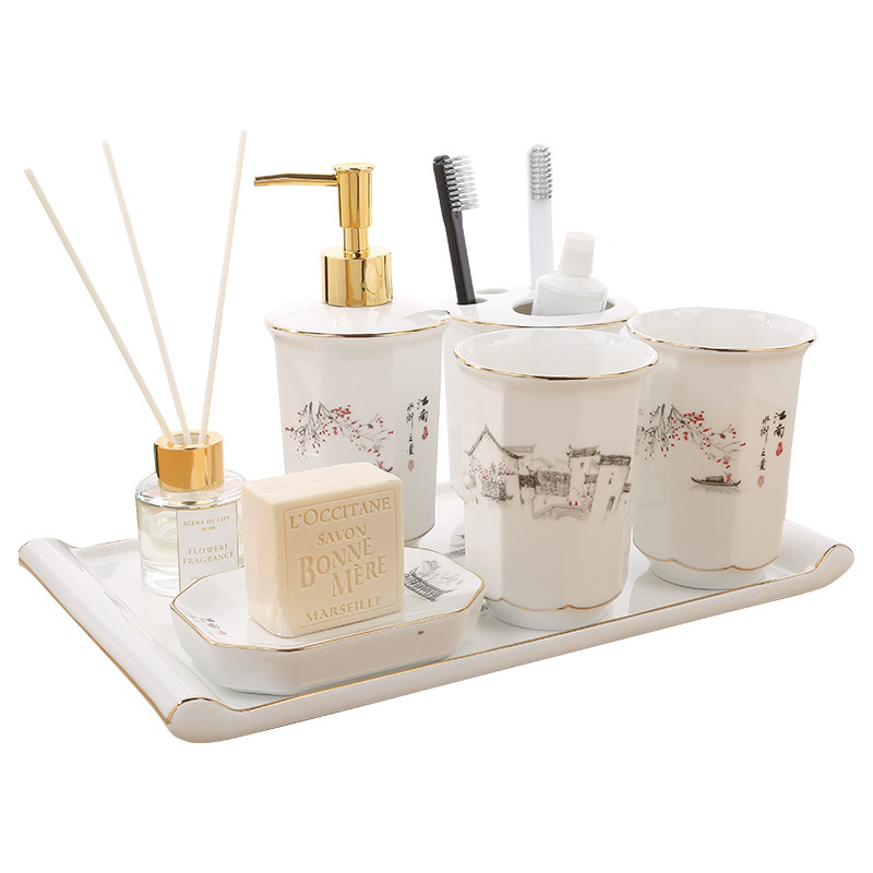 Керамический комплект, ополаскиватель для рта, зубная щетка, мыльница, китайский стиль