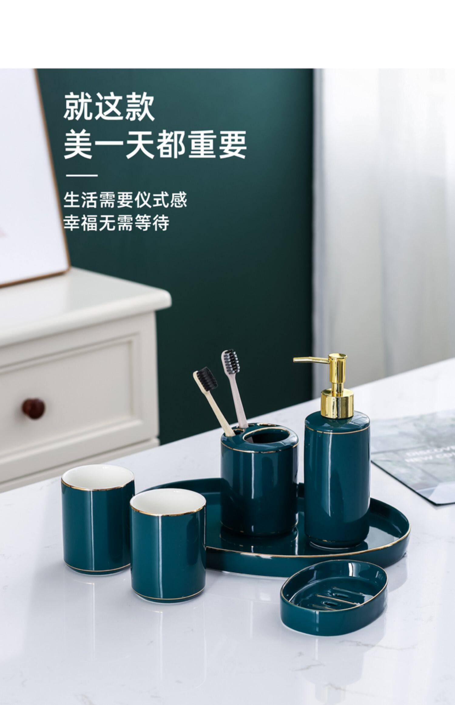 Комплект, керамический ополаскиватель для рта для домашнего использования, легкий роскошный стиль, европейский стиль