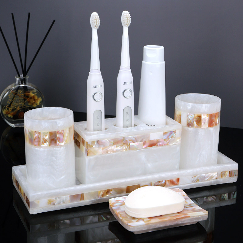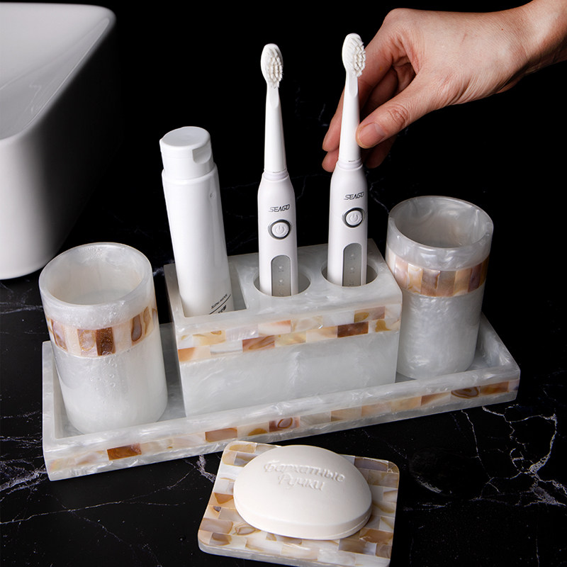 Amojoy Комплект, ополаскиватель для рта, зубная щетка, легкий роскошный стиль, 4 предмета