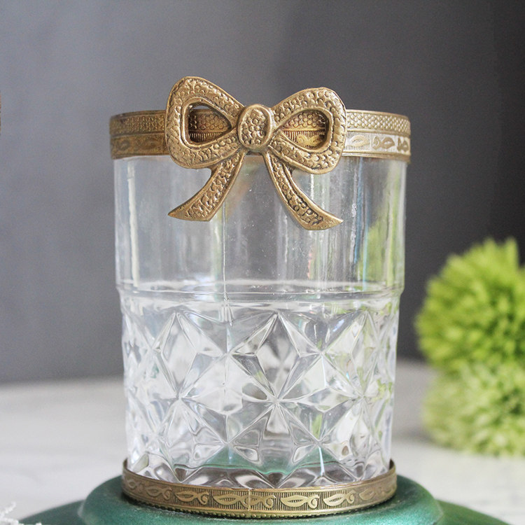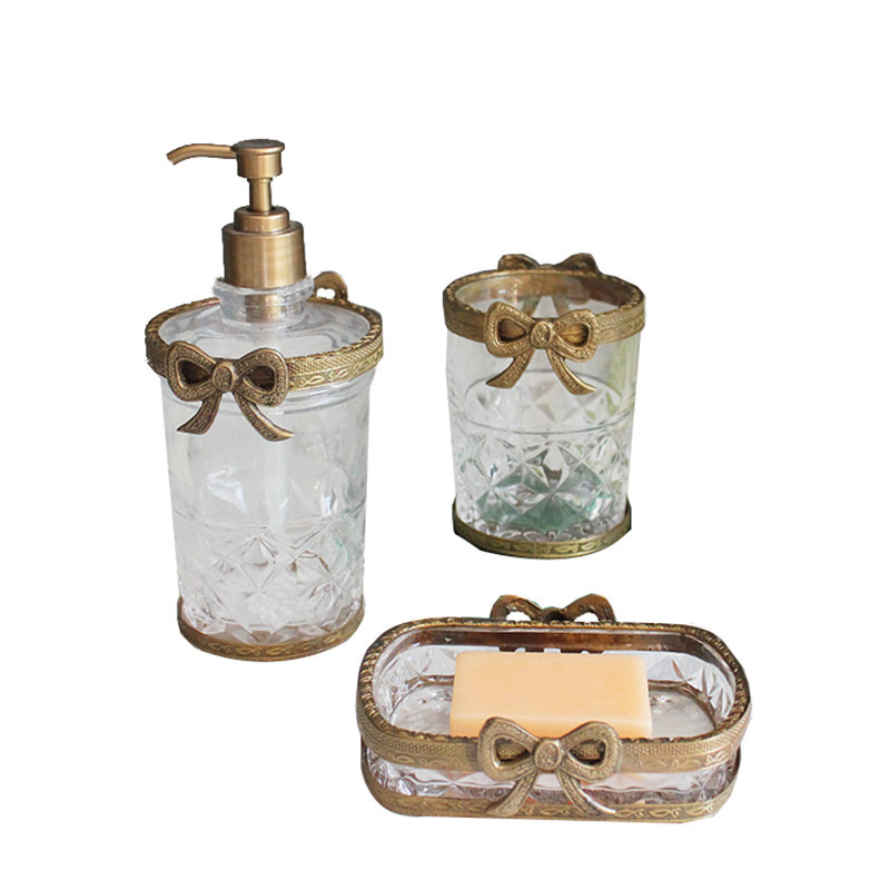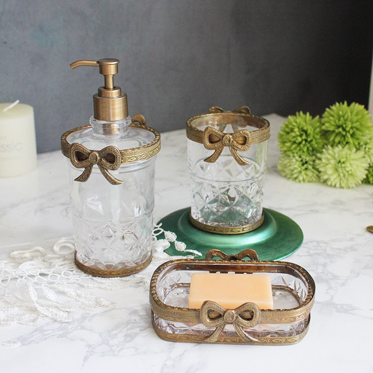 Импортный латунный стеклянный ретро комплект с бантиком, мыло, мыльница, европейский стиль, в американском стиле, Индия, 3 предмета