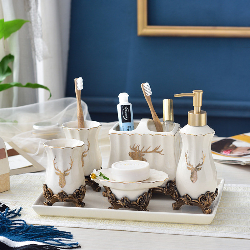 摩言 Европейская керамическая ванная комната с пятью ванной комнатой принадлежит зубной щетке для рот рот чашка набор туалет туалет, легкая роскошь