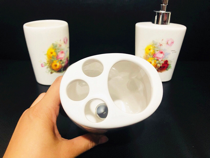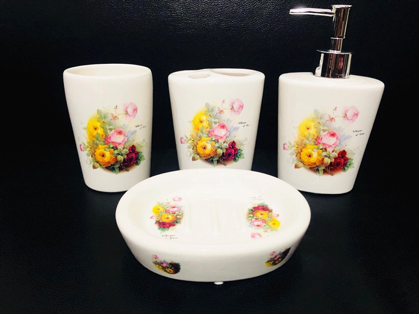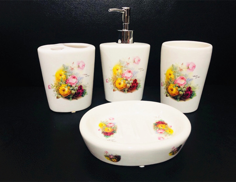 Импортный керамический комплект, мыло, мыльница, ополаскиватель для рта, гель для душа, тара, зубная щетка, в корейском стиле, 4 предмета