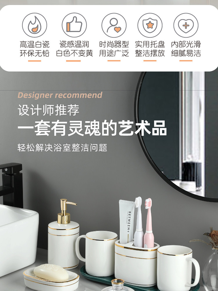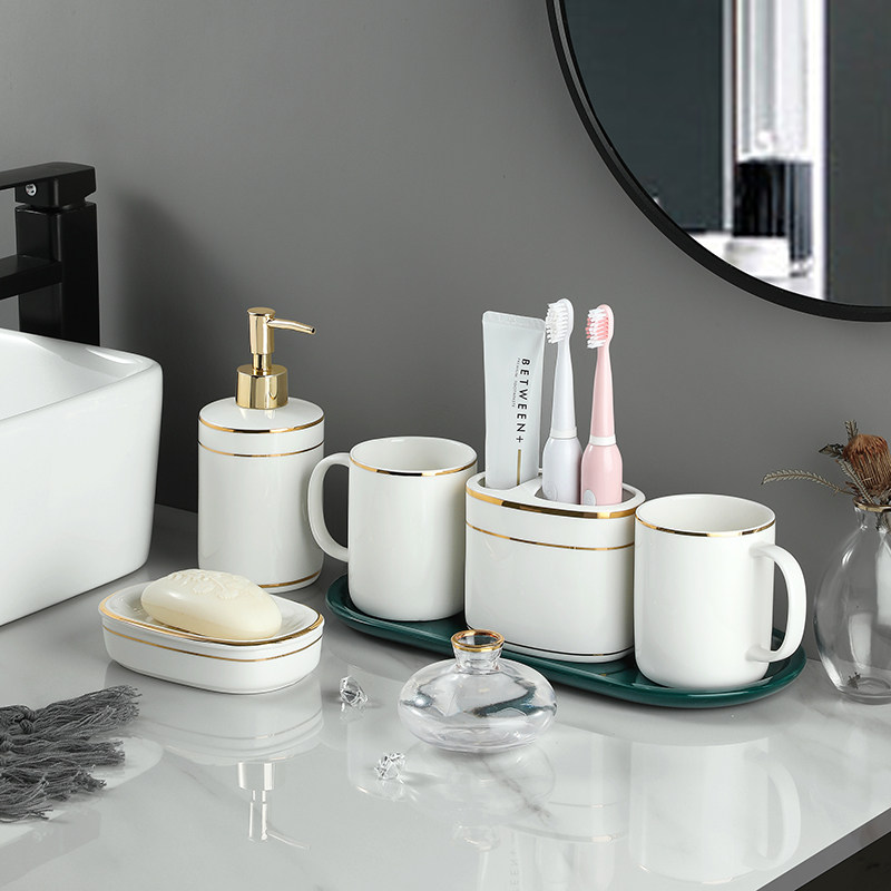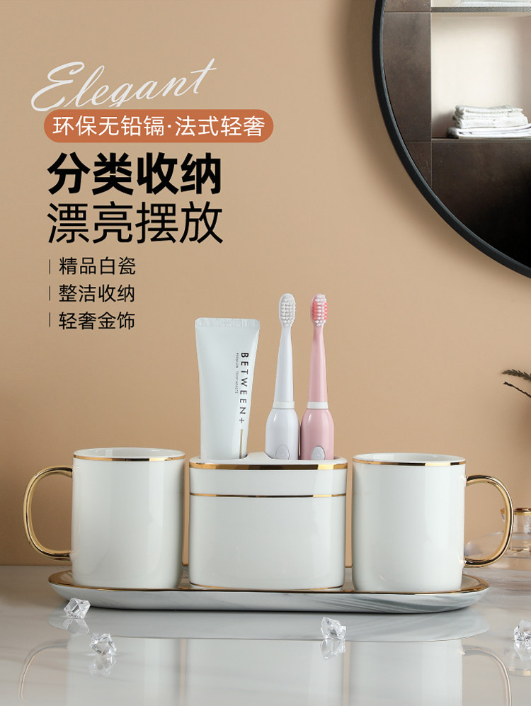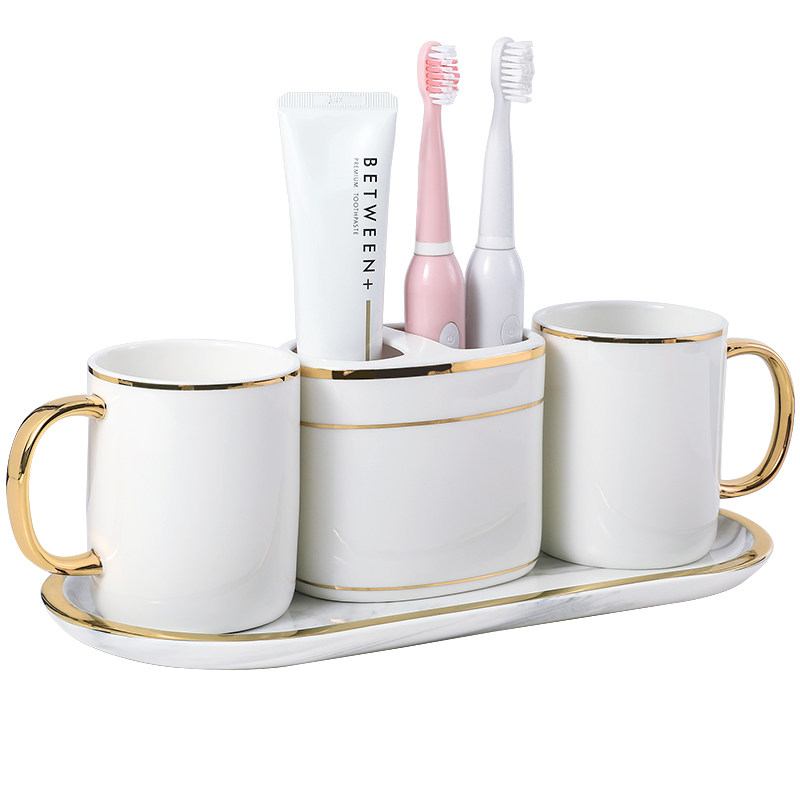 Комплект, керамический ополаскиватель для рта для домашнего использования, высококачественная зубная щетка для влюбленных, 4 предмета, легкий роскошный стиль