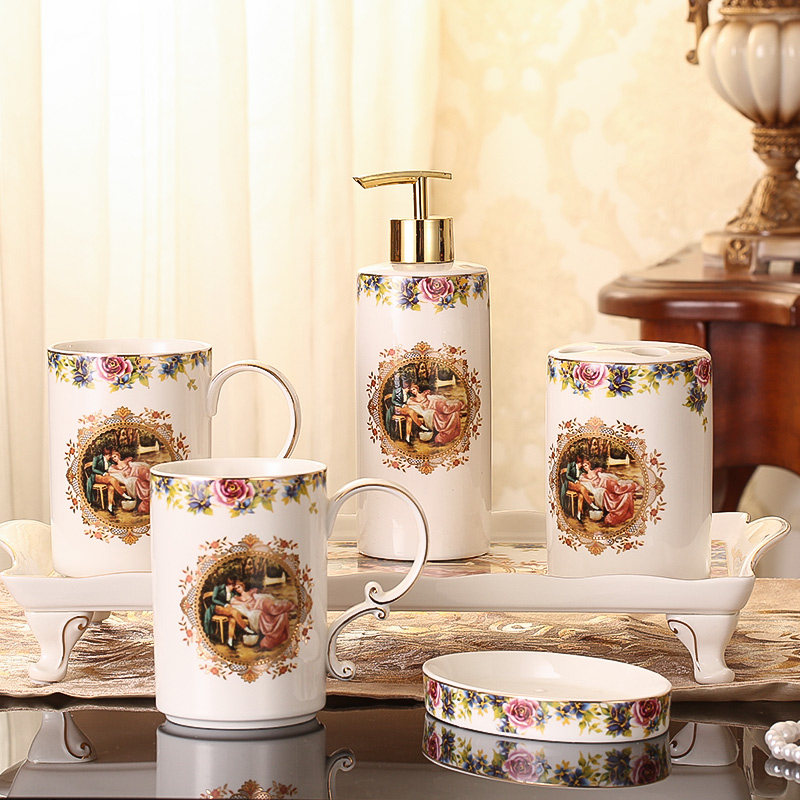 Комплект, керамический ополаскиватель для рта, легкий роскошный стиль, европейский стиль